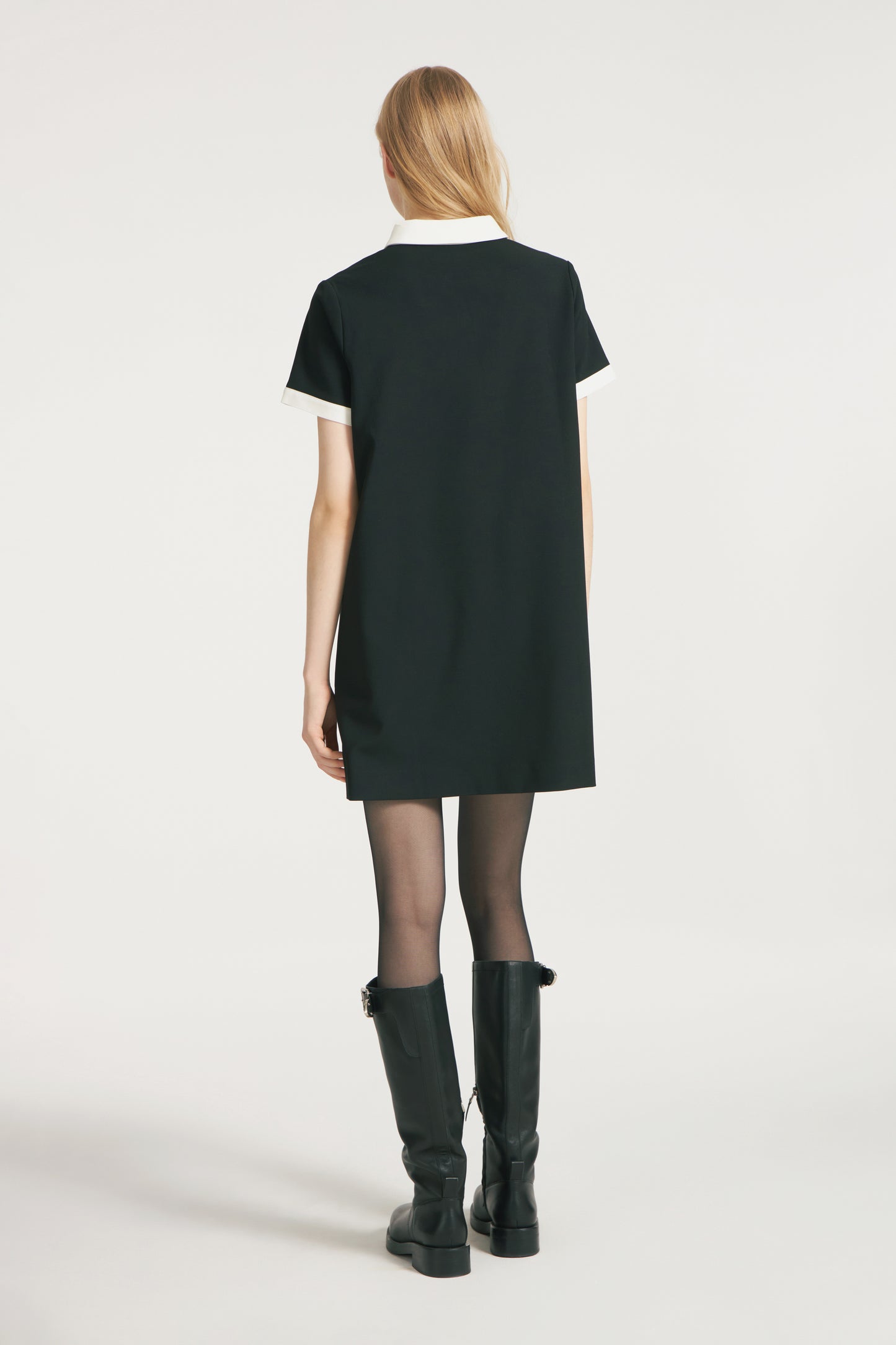 Short dress in woven fabric with contrasting color trims. Collar, a button placket and short sleeves. Styled with a flattering A-line silhouette.