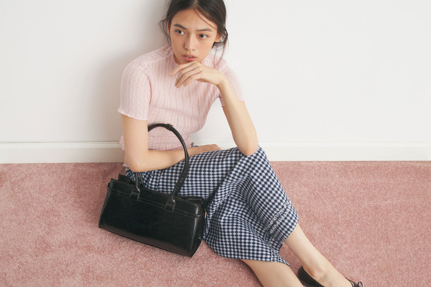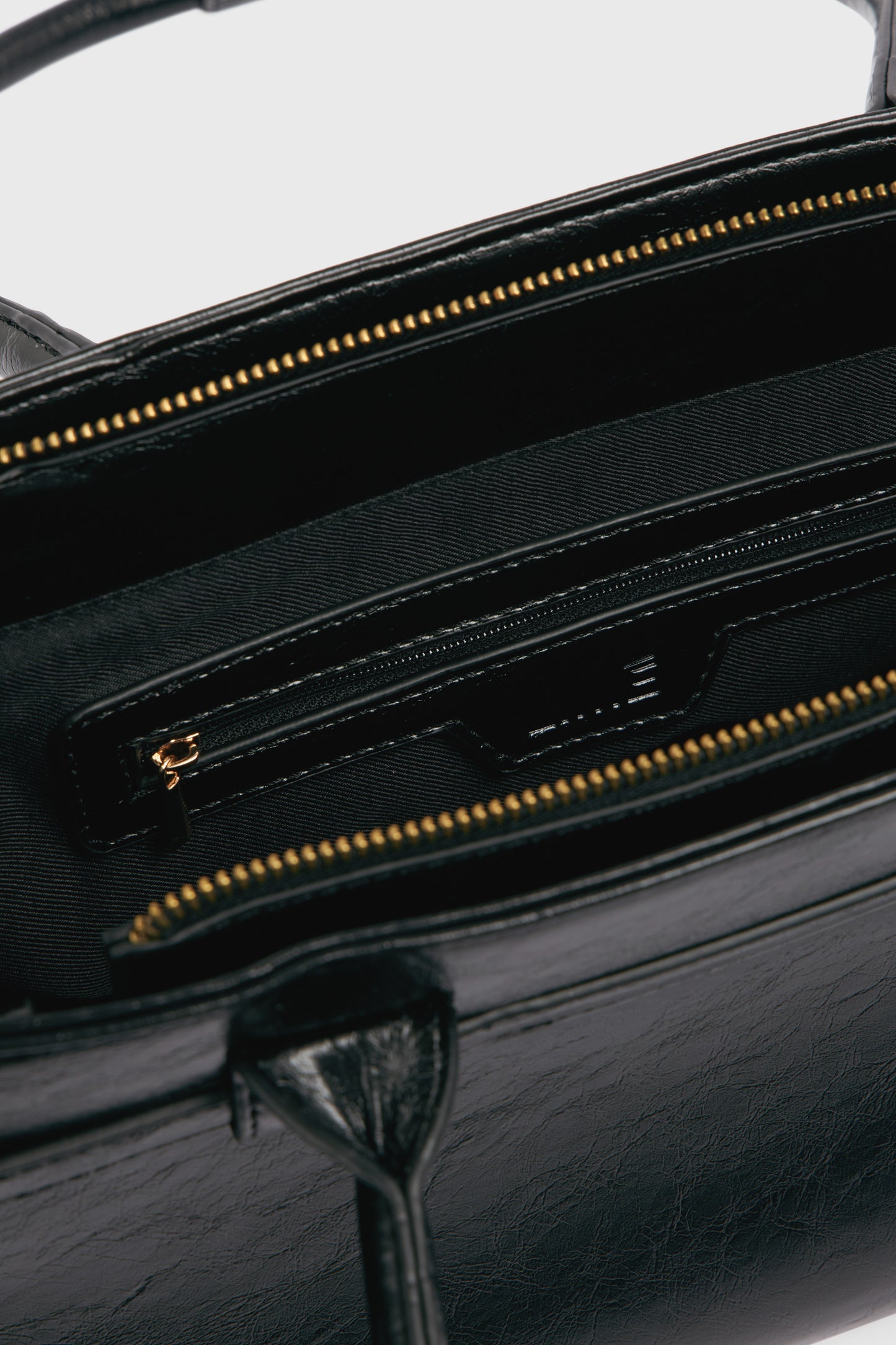 Shoulder bag with zipper. Top hadles. Detachable, adjustable shoulder strap. Lined inner compartment with zipped pocket. Size: 36 х 14 х 20,5 cm (length х width х height).