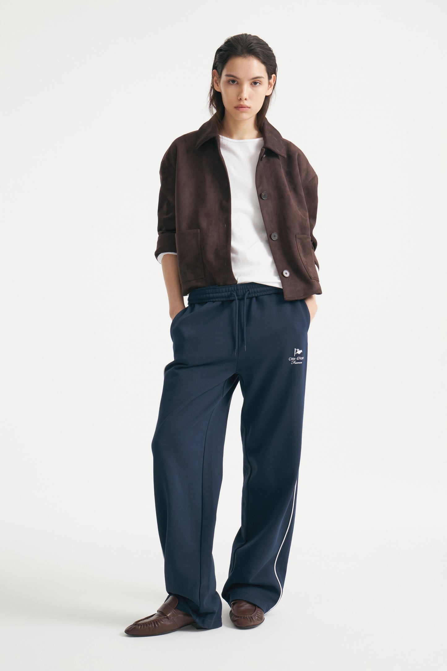 SIDE-STRIPED PRINT-MOTIF TROUSERS