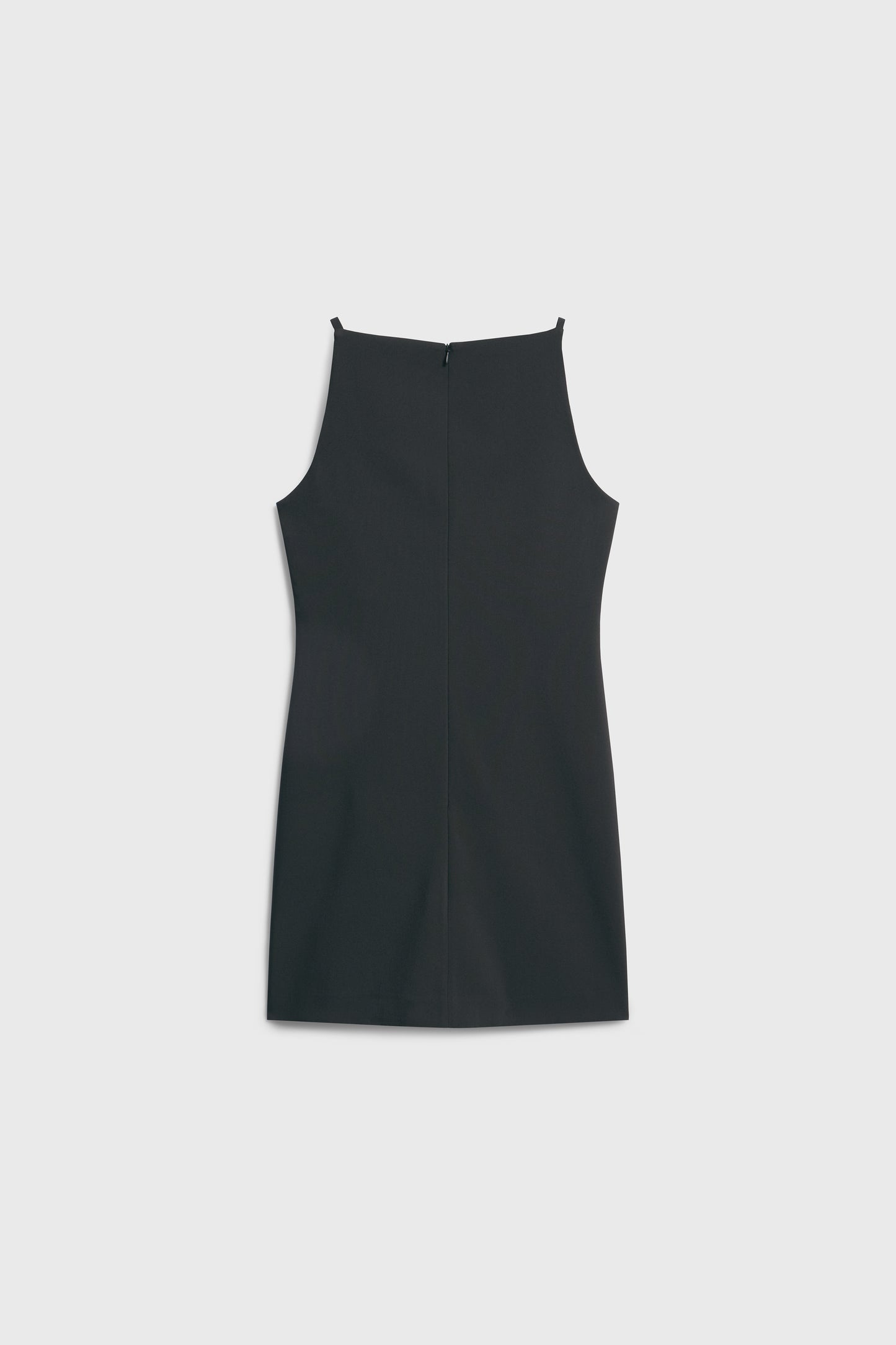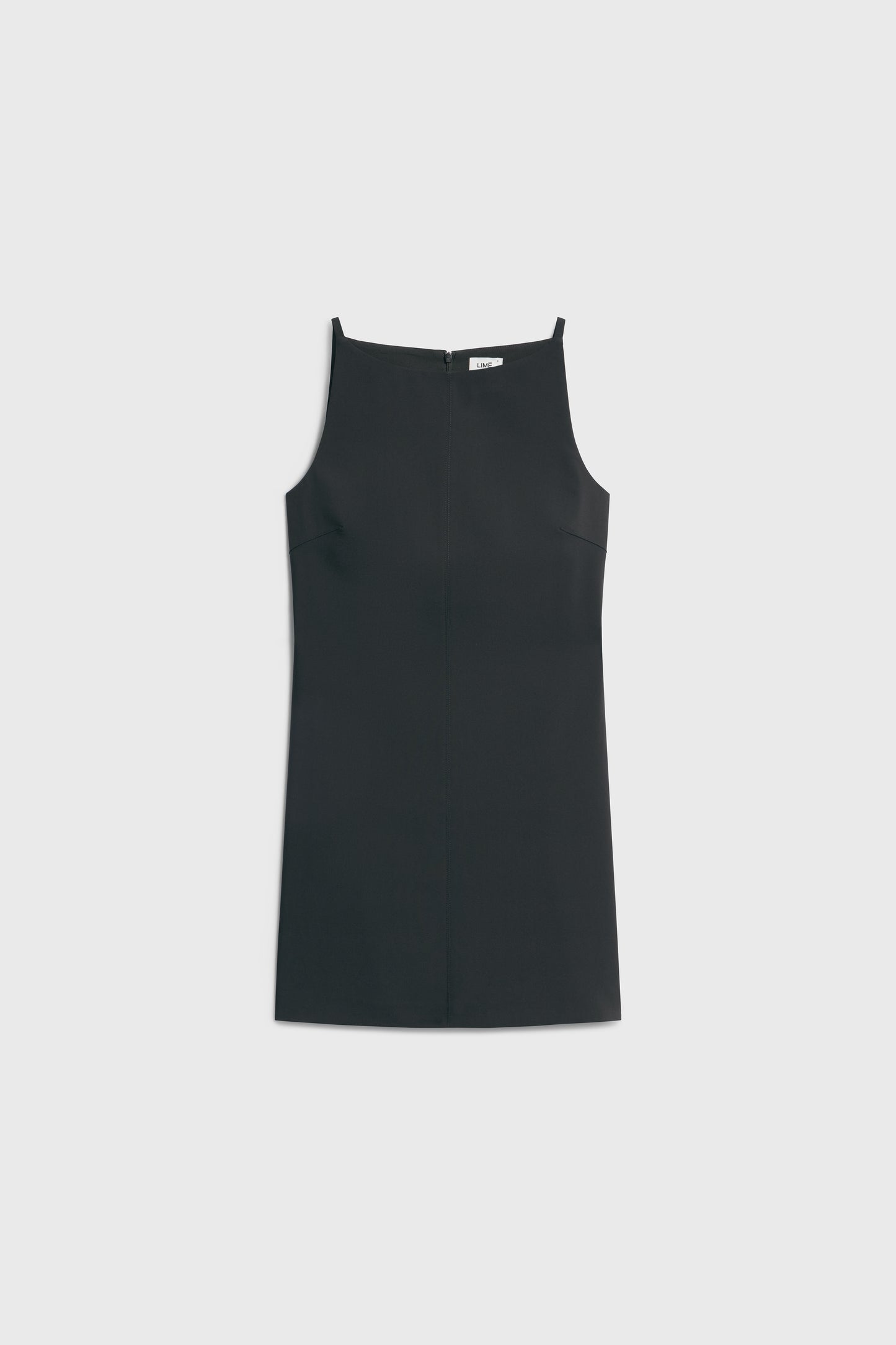 Sleeveless mini dress in sturdy twill with a boat neckline. Flared hem. Invisible back zip fastening.