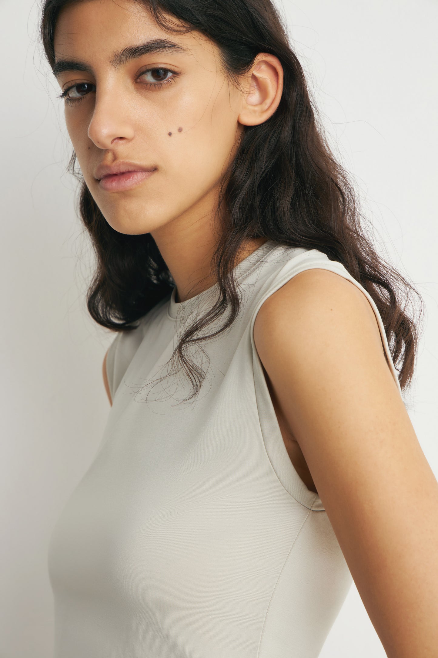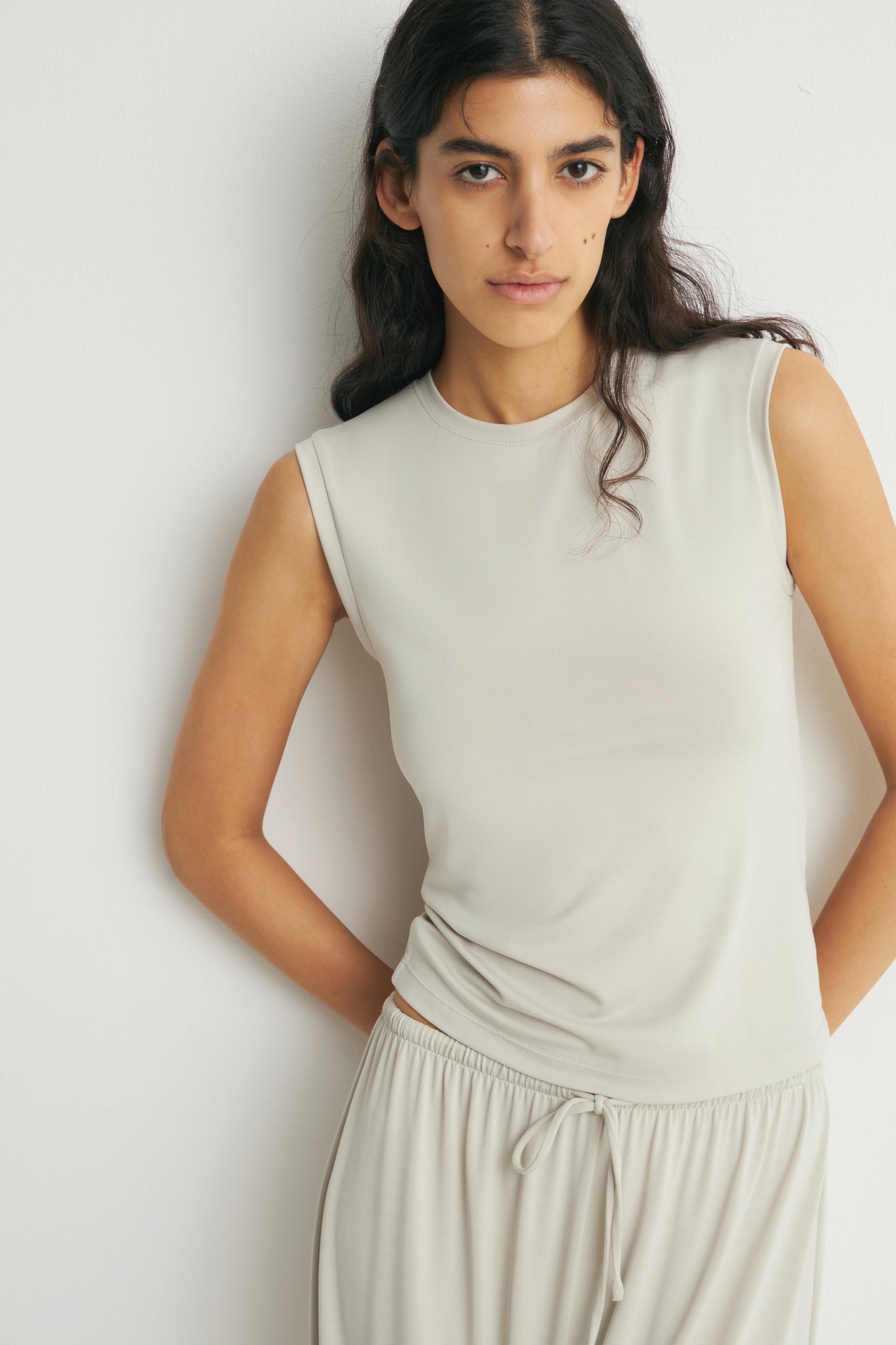 Fitted top in modal jersey featuring a round neck. Narrow trim.