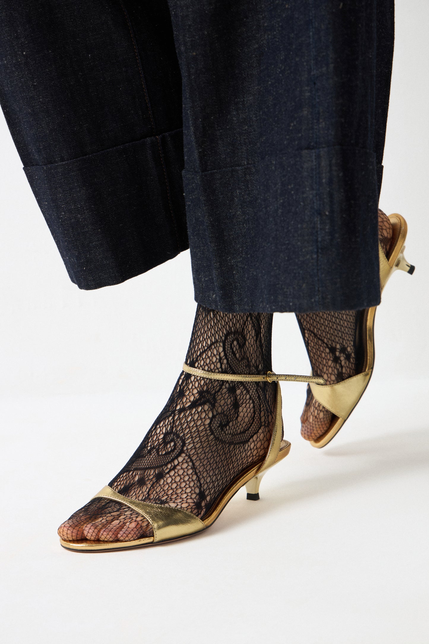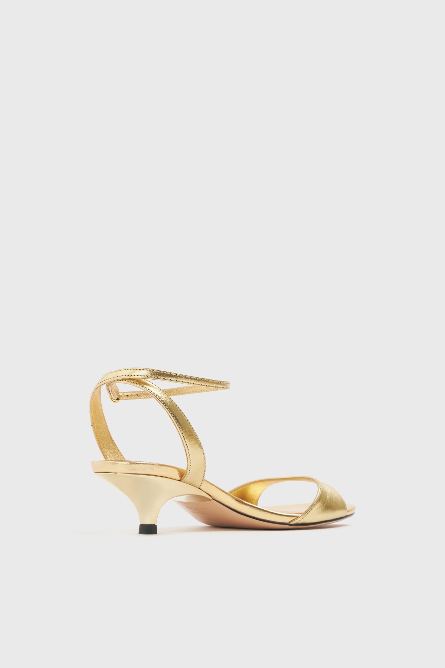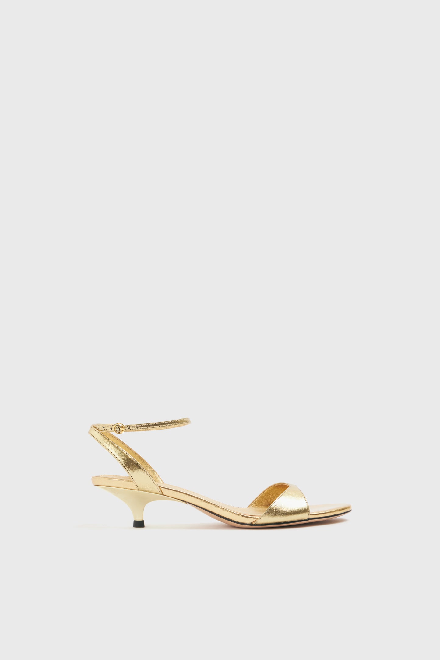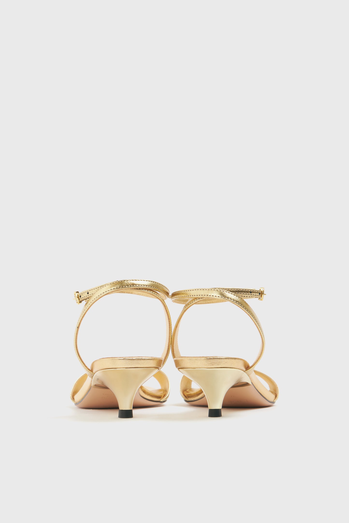 High-heel leather sandals. Featuring rounded open toes. Detailed with a curved foot straps. Leather linings and insoles. Buckled ankle strap fastening. Your purchases are delivered with a fabric bag.