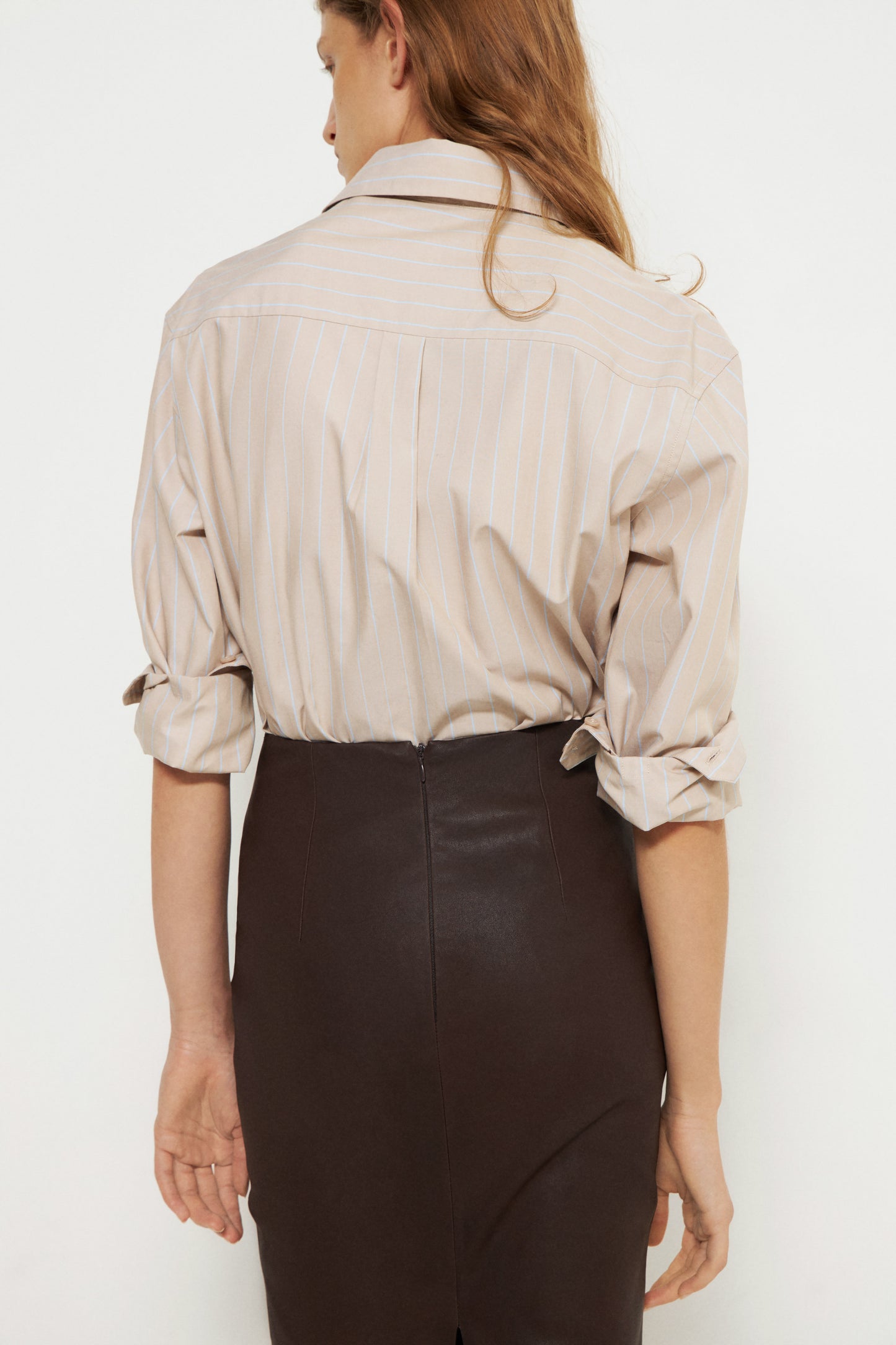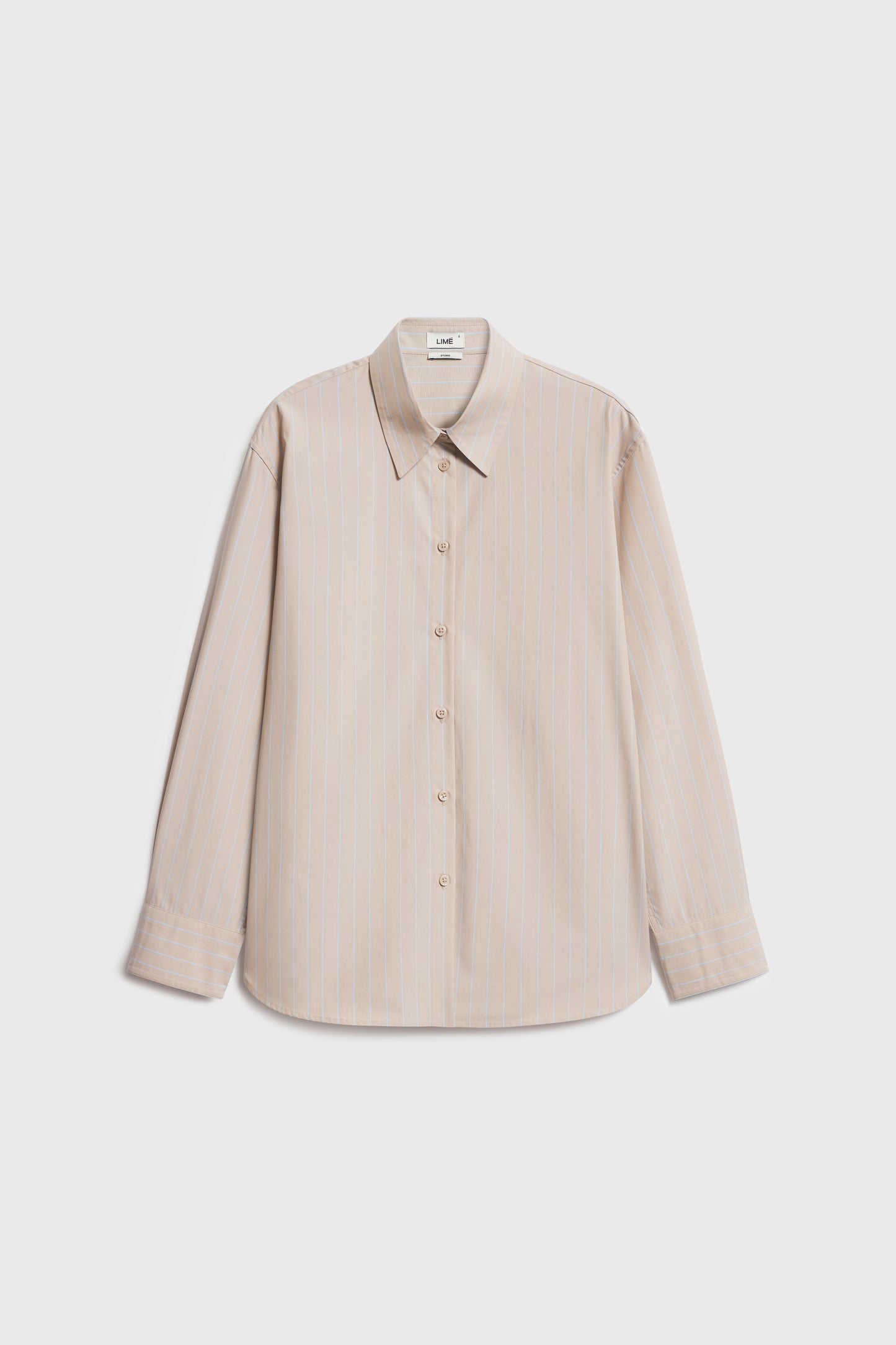 Oversize-fitting shirt in striped cotton with a collar. Cuffed long sleeves. Button-up front.