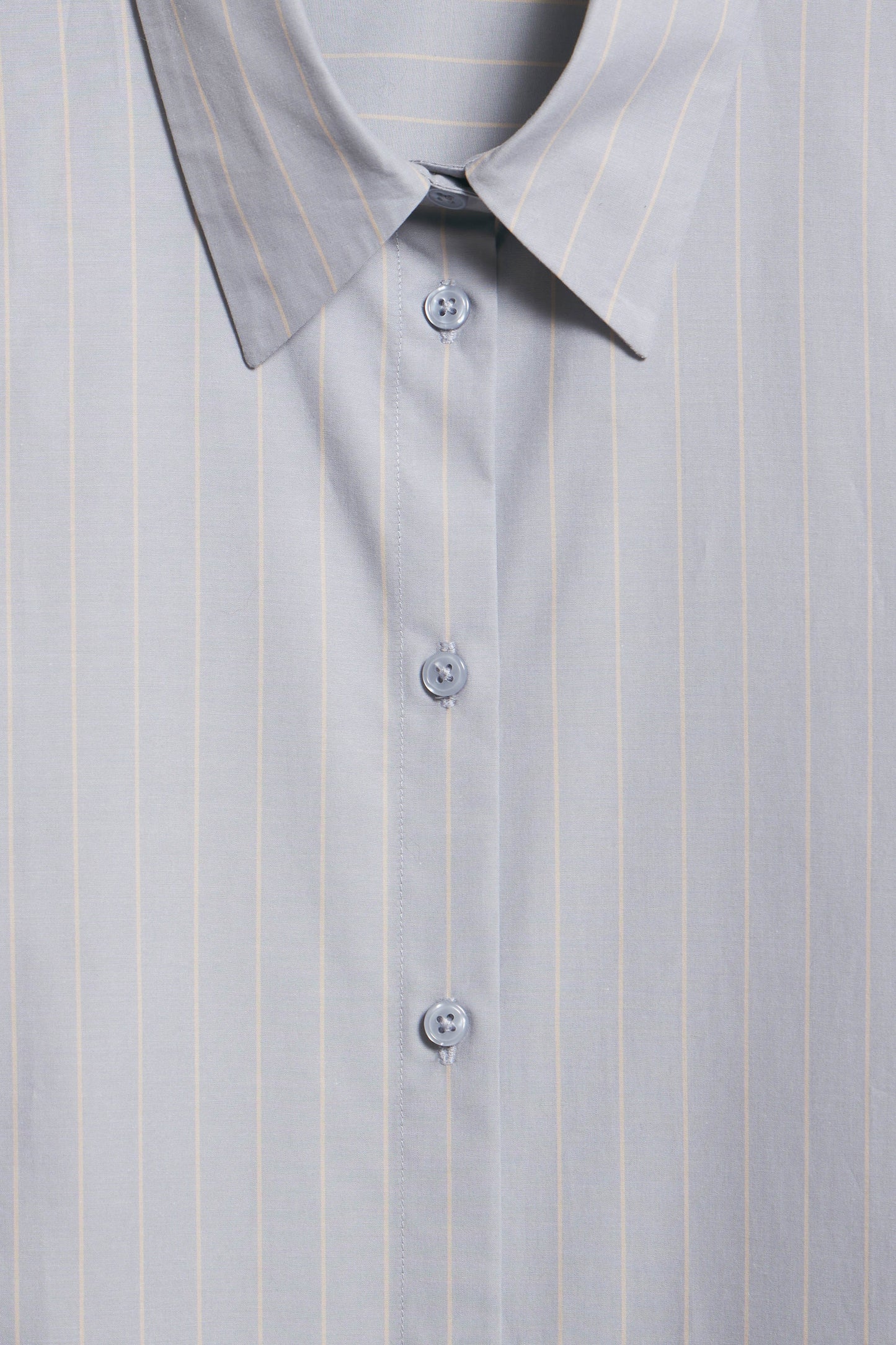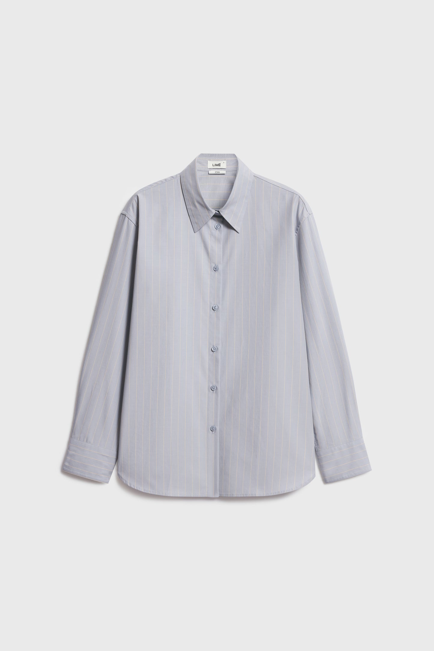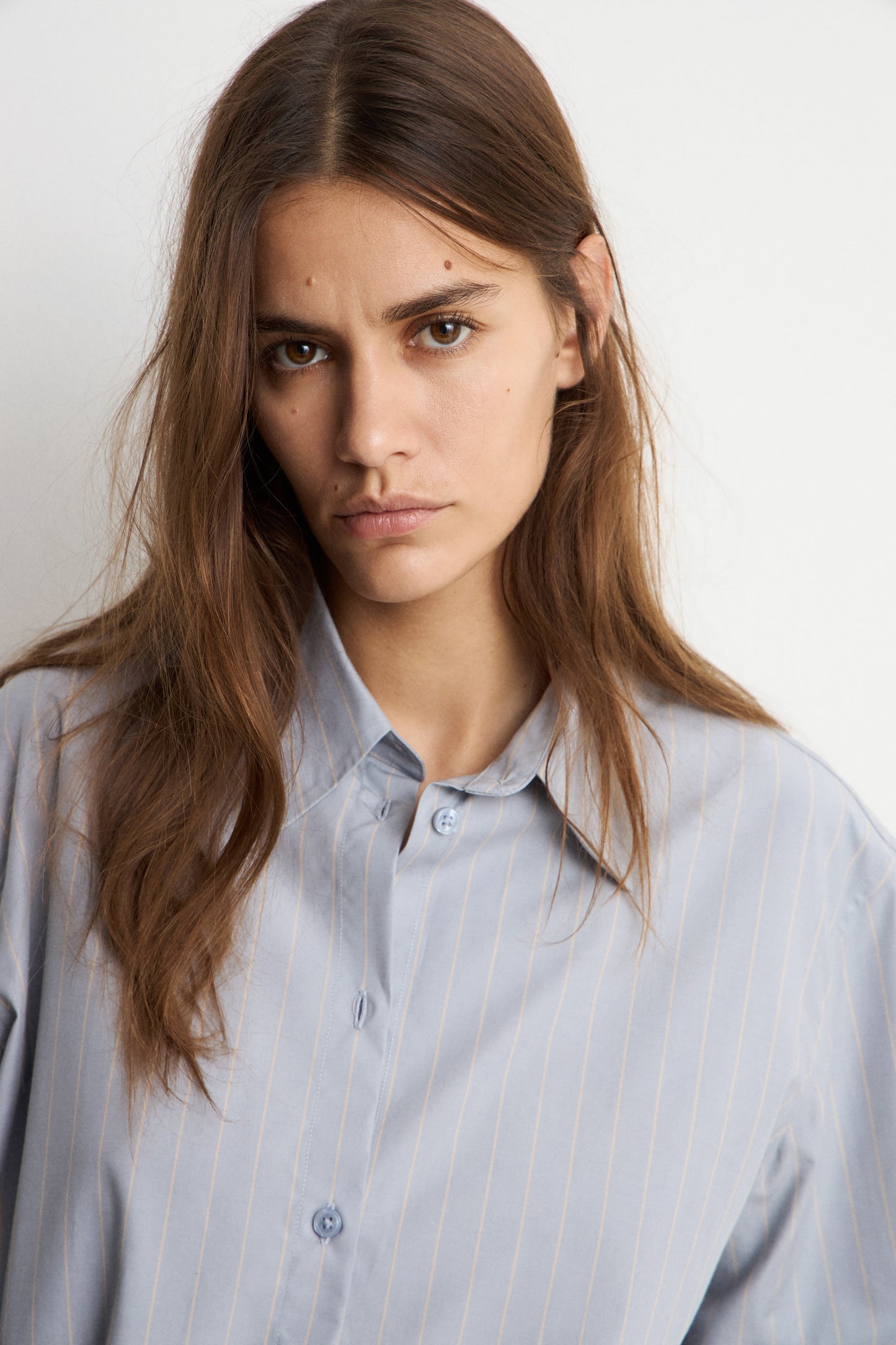 Oversize-fitting shirt in striped cotton with a collar. Cuffed long sleeves. Button-up front.