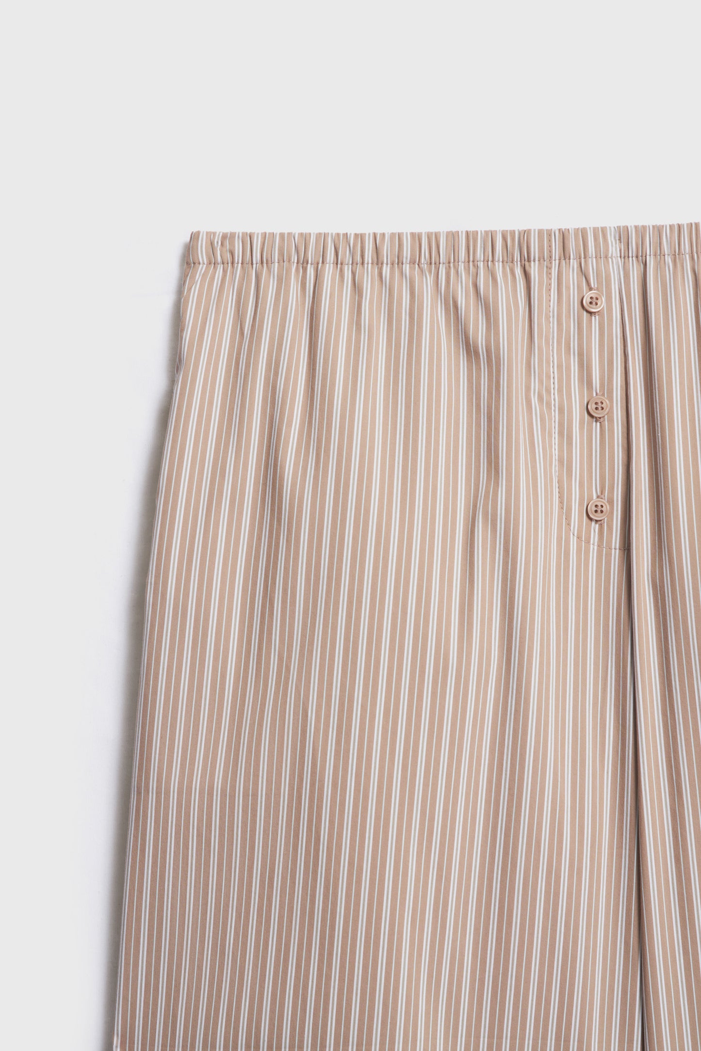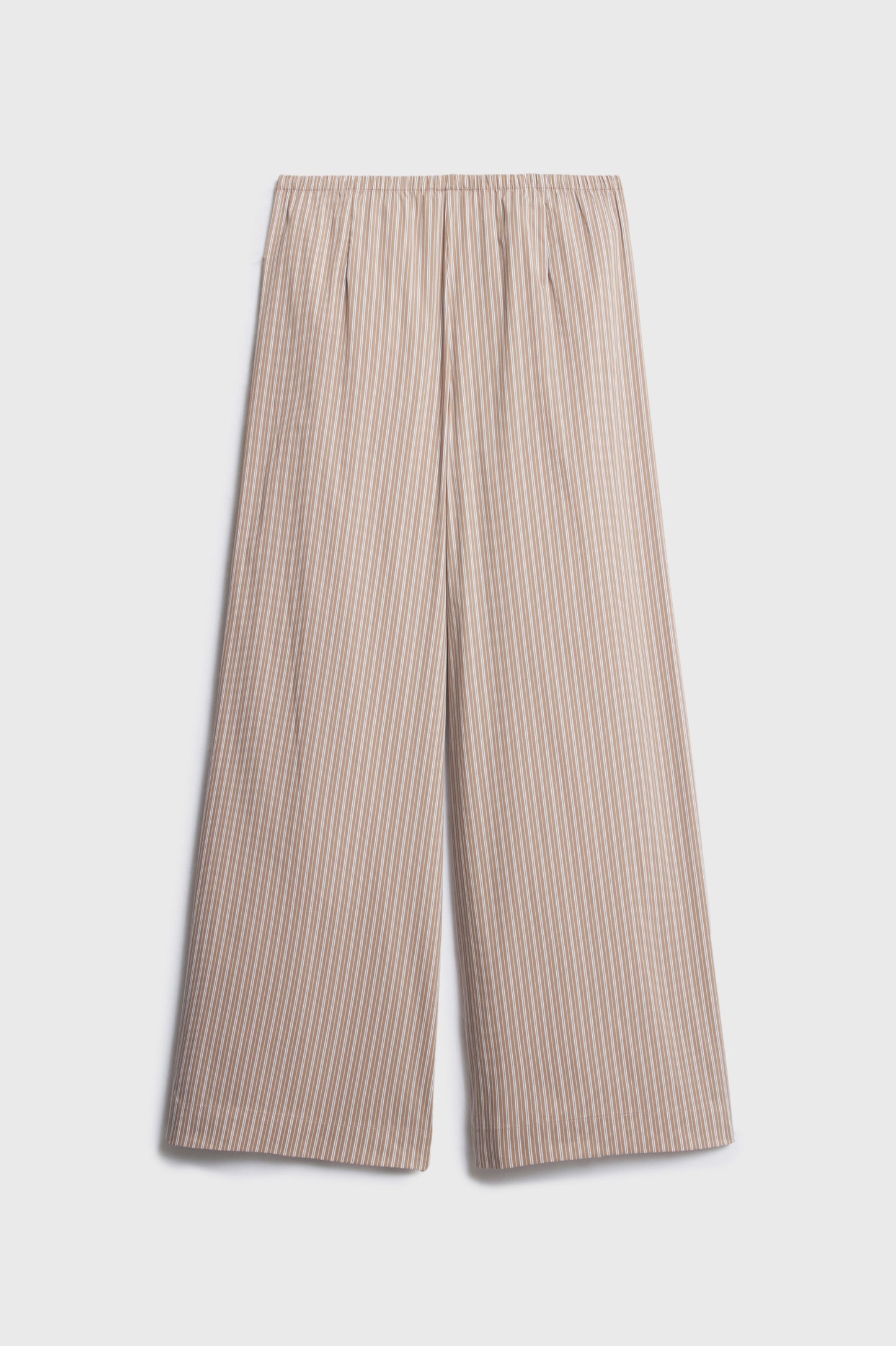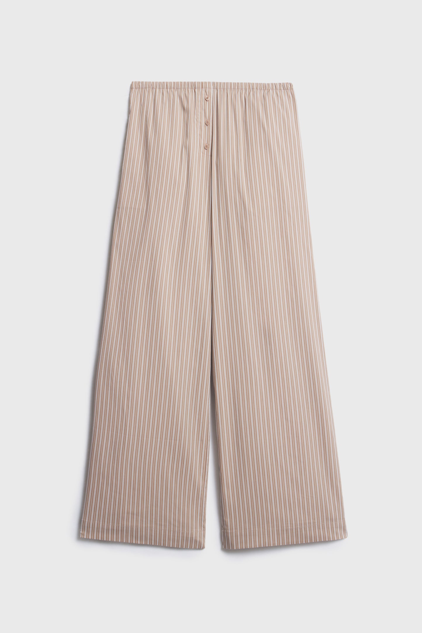 Loose-fit trousers in soft, woven fabric cotton blend. Covered elastic at waistband, mock fly with decorative buttons, and discreet side-seam pockets.