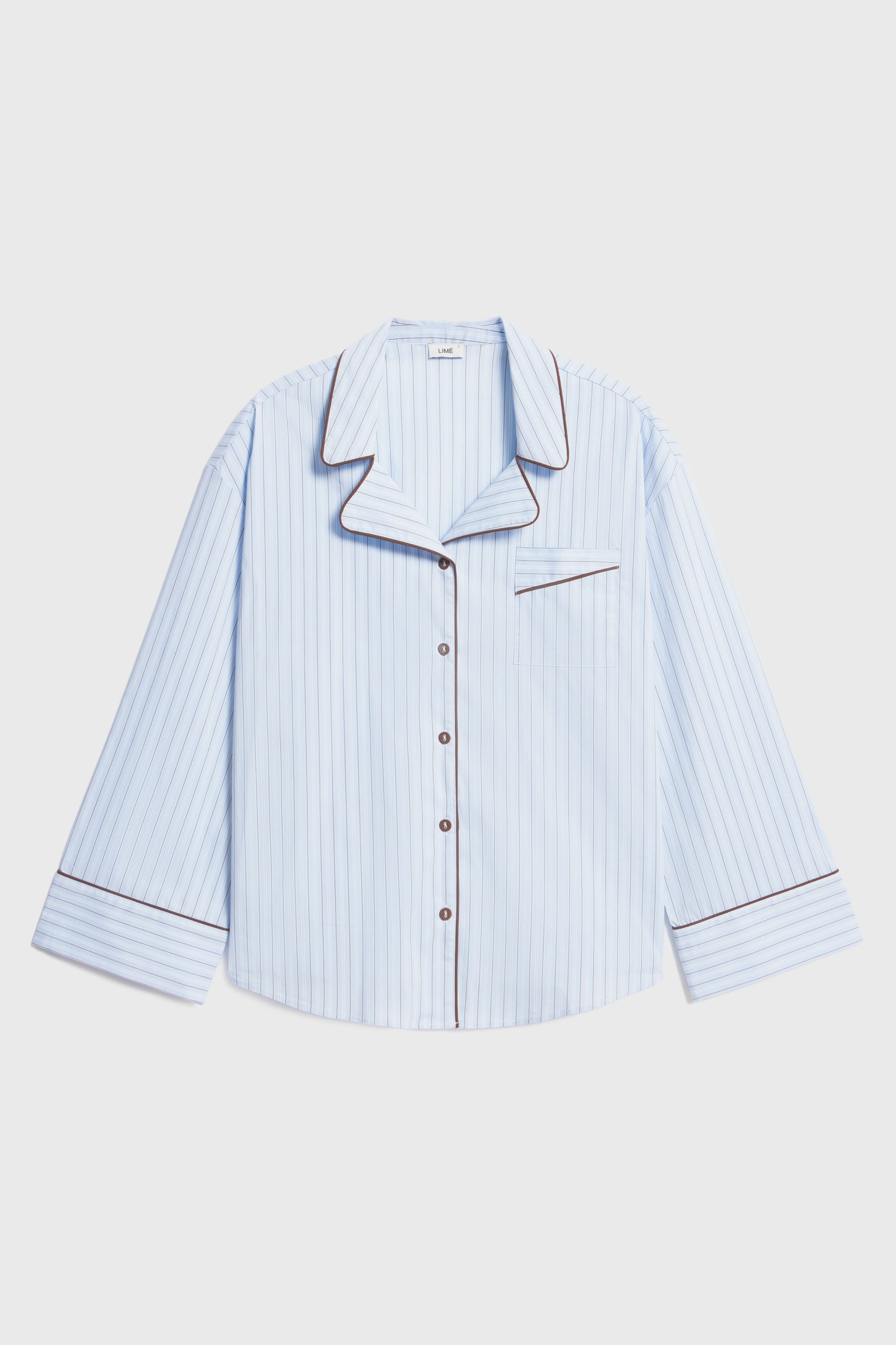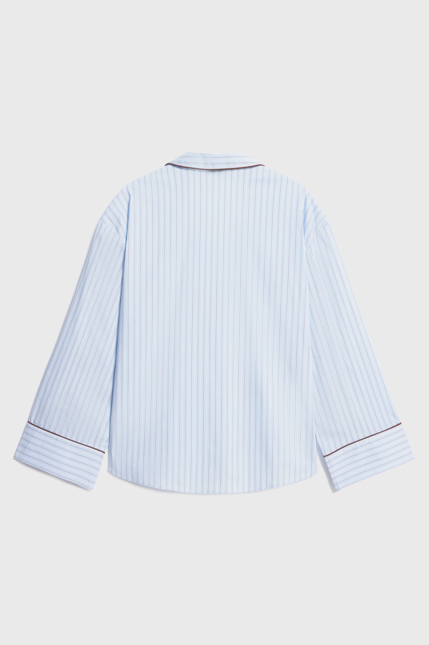 Long-sleeved shirt in airy cotton blend with contrast piped trim. Resort collar, buttons at front, a patch chest pocket. Straight-cut hem.
