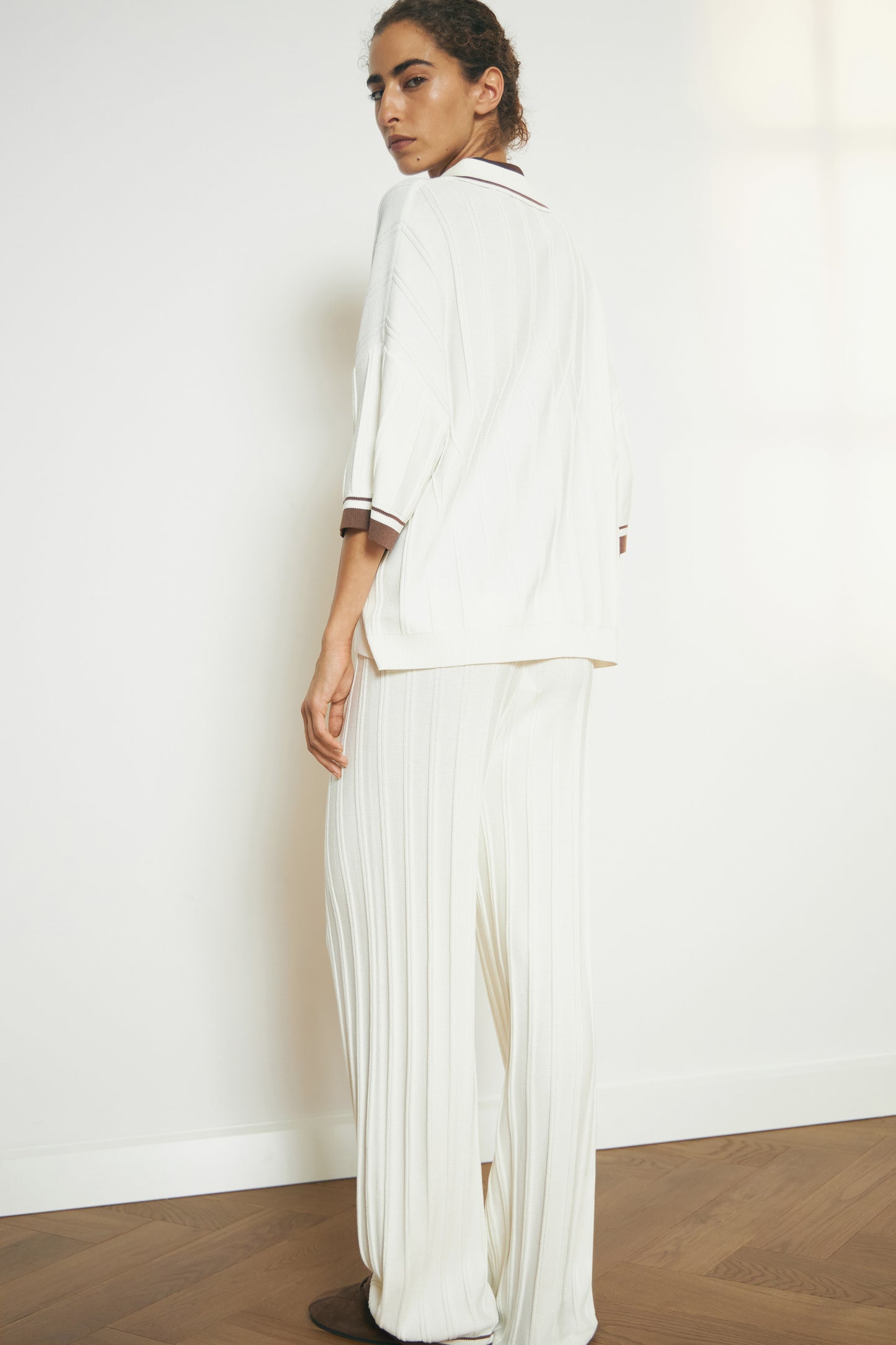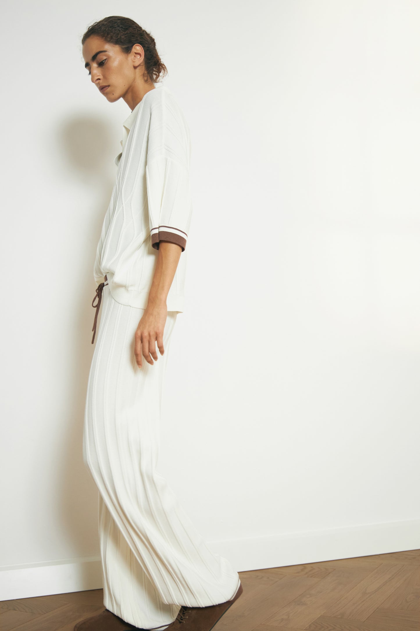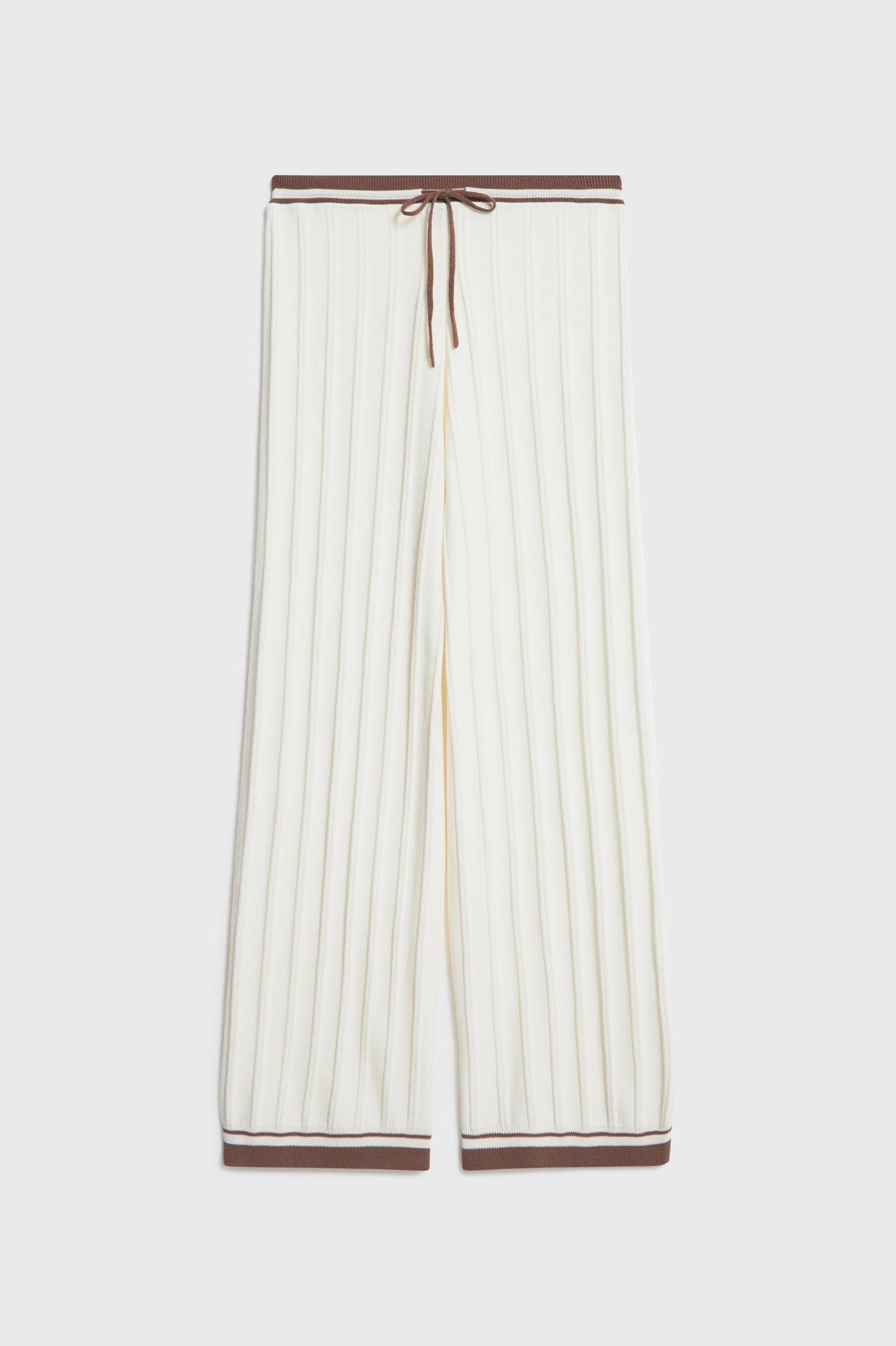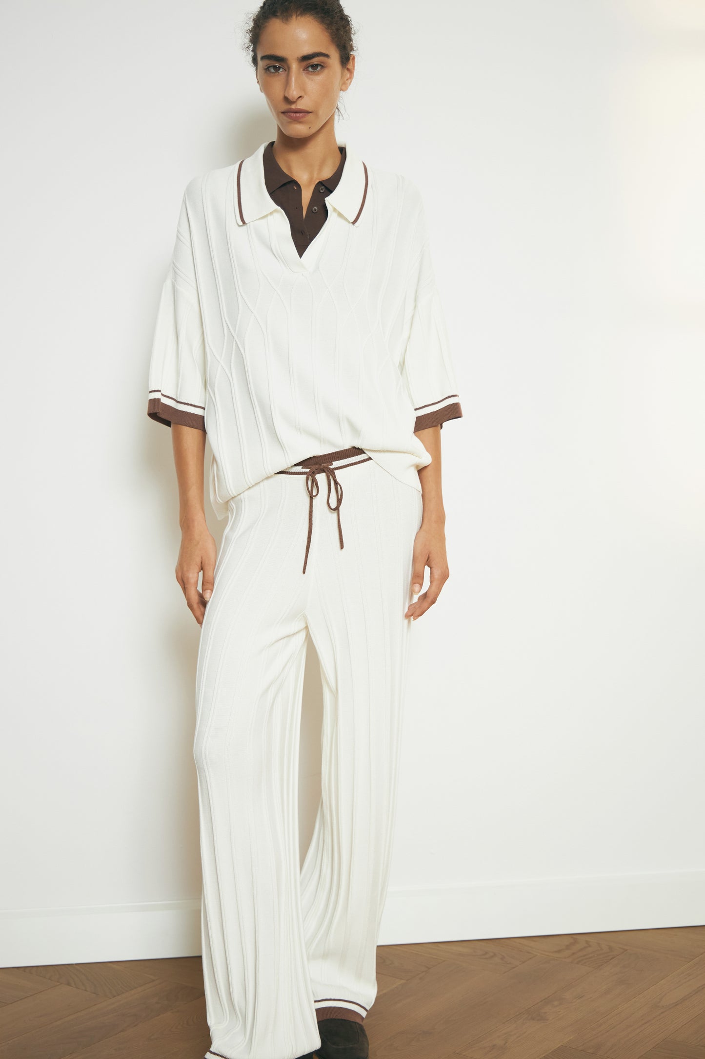 Trousers in a thick, textured knit made of viscose blend fabric. Contrast trim. Straight legs. Elasticized drawstring waistband.