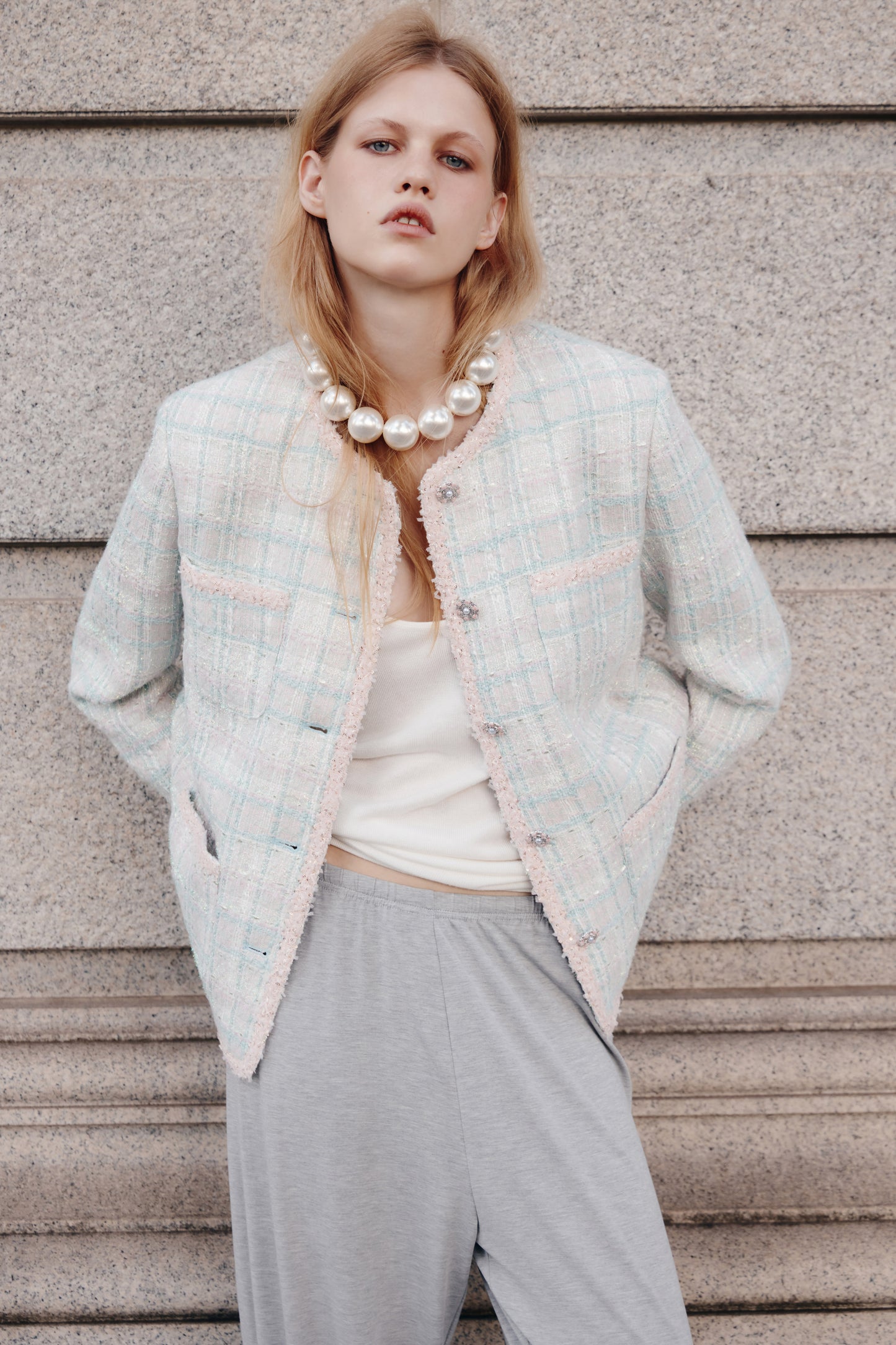 TEXTURED-WEAVE STRAIGHT FIT BLAZER