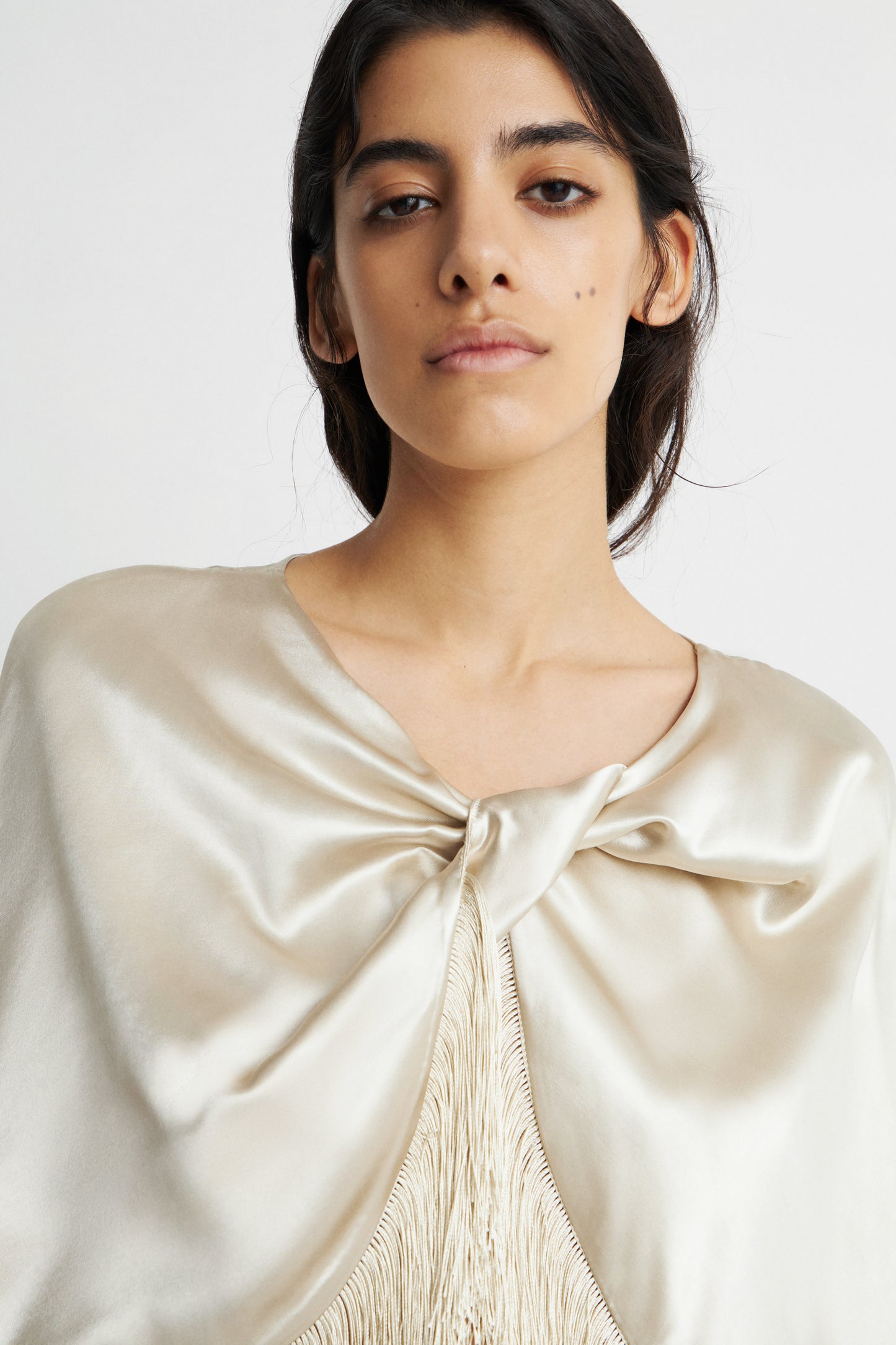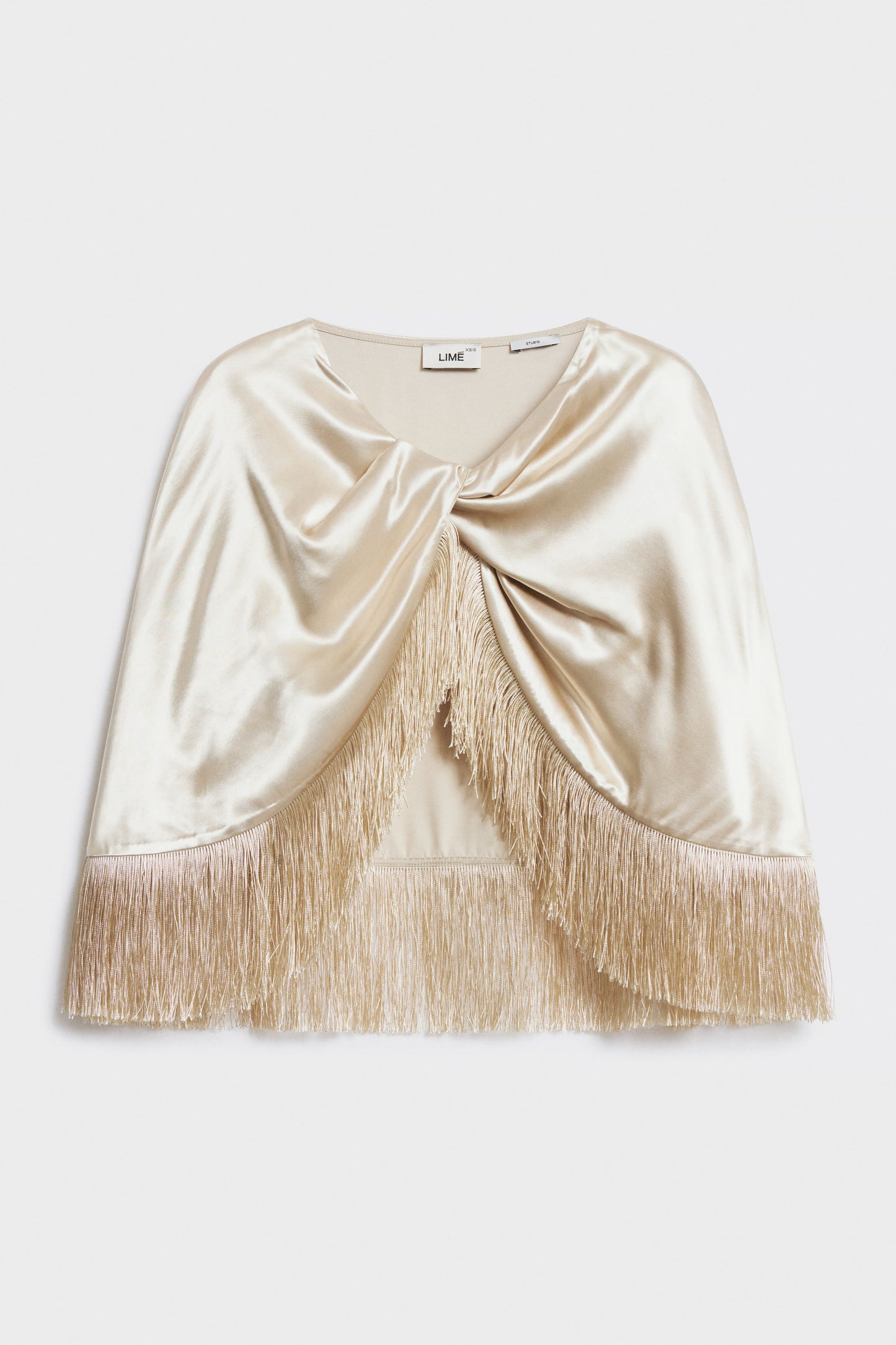 FRINGE-TRIMMED SATIN CAPE