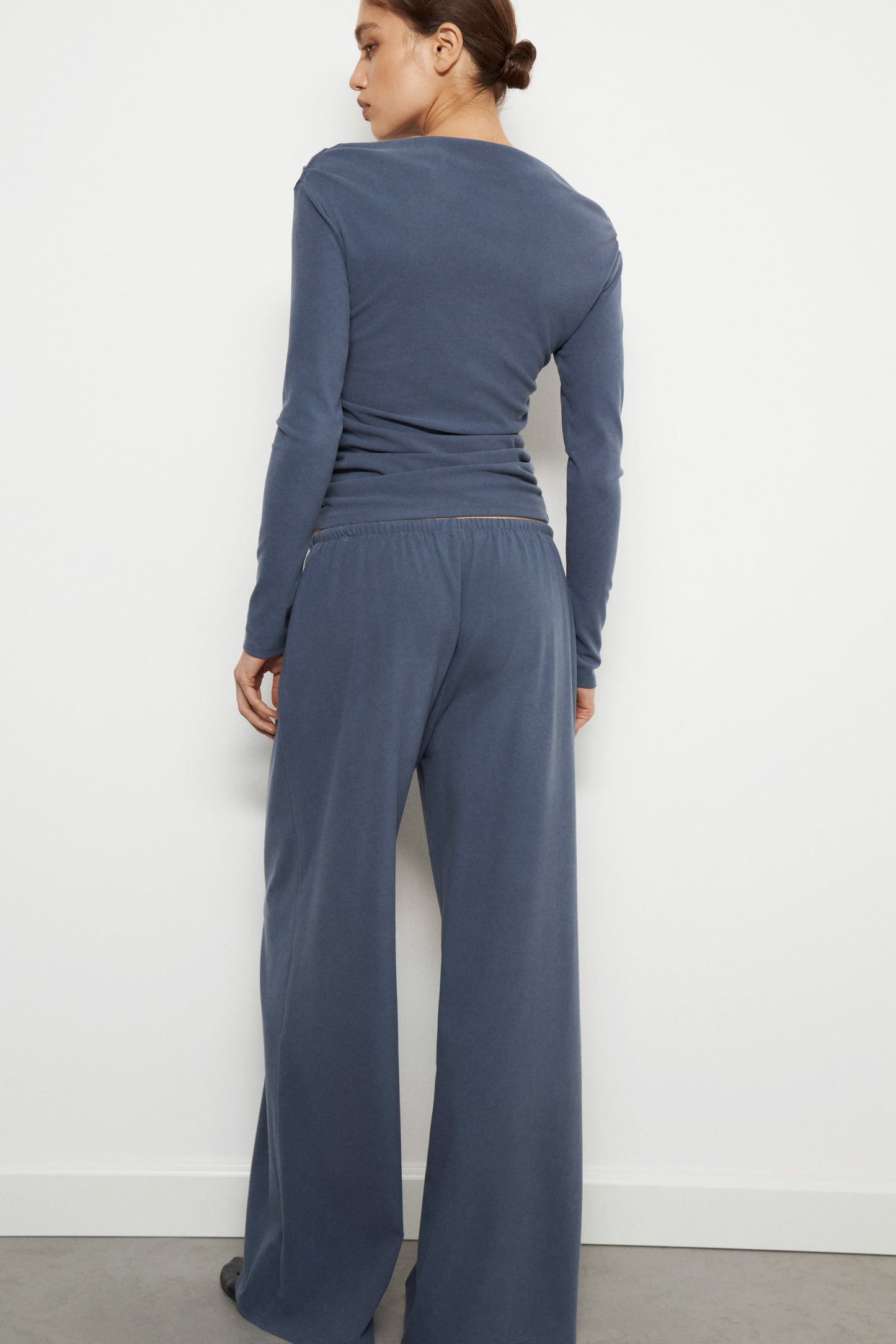 VISCOSE-COTTON WIDE-LEG TROUSERS
