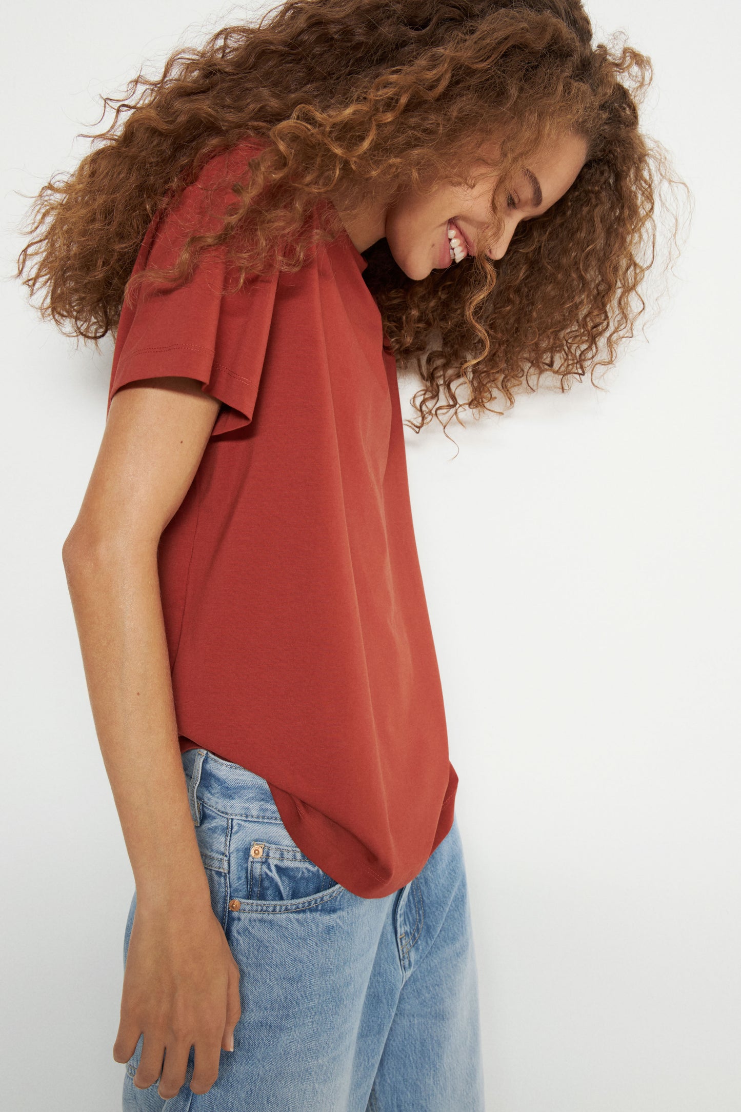 Regular fit T-shirt in a viscose and cotton blend jersey. Featuring a round neck and short sleeves.