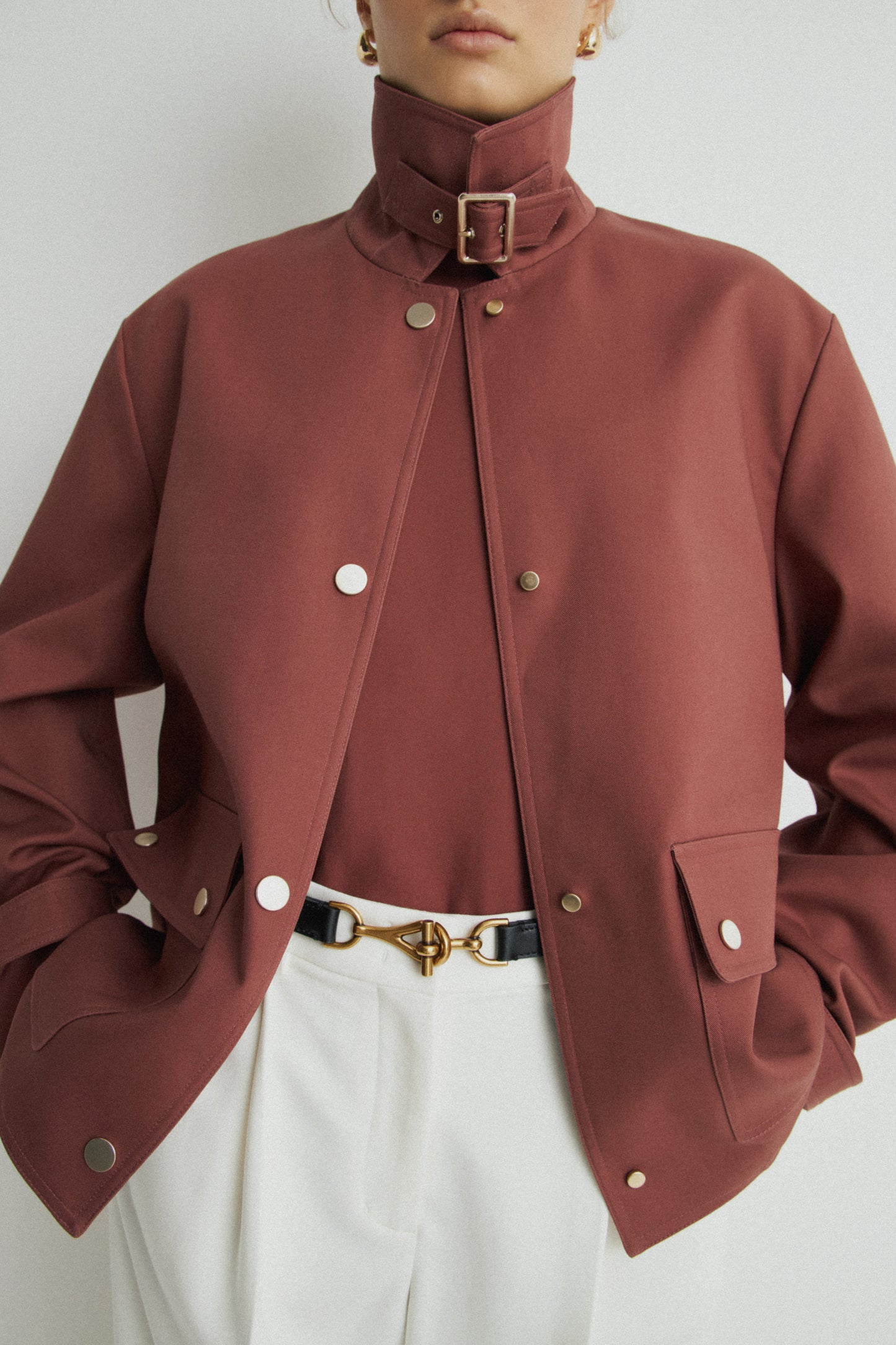 Jacket in wind-resistant, water-repellent cotton twill. Straight fit with a press-stud down the front. Collar with adjustable throat latch and a buckle. Featuring front flap pockets with concealed press-stud. Long sleeves and cuffs with adjustable tab.