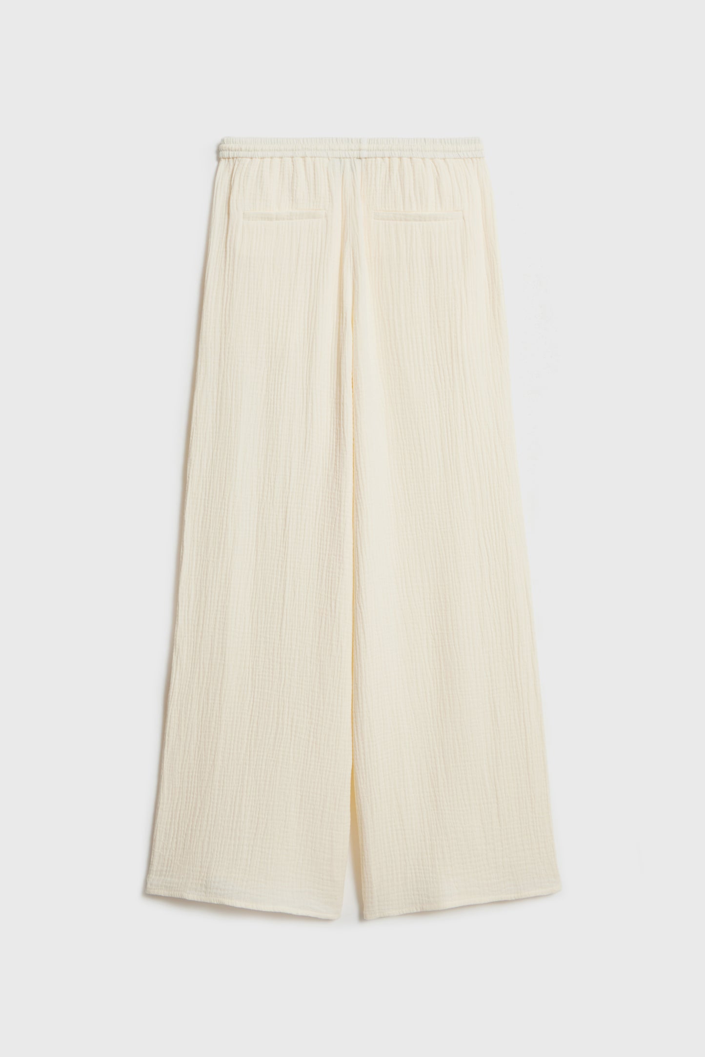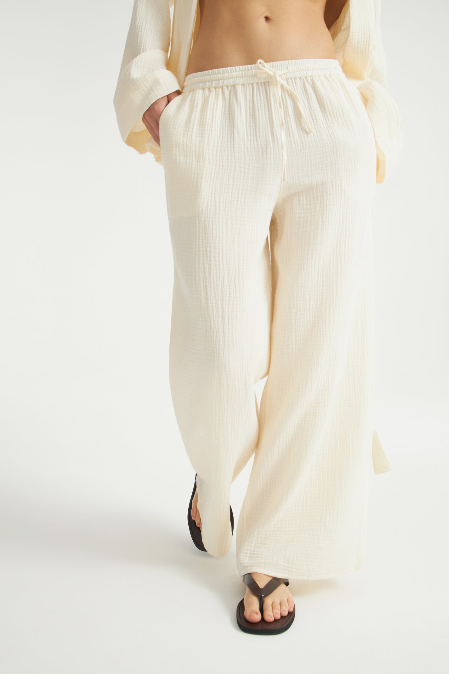 Wide, relaxed-fit trousers in soft cotton muslin that featuring wide legs and a low, elasticated waist with a narrow drawstring. Front pockets and fake back pockets.
