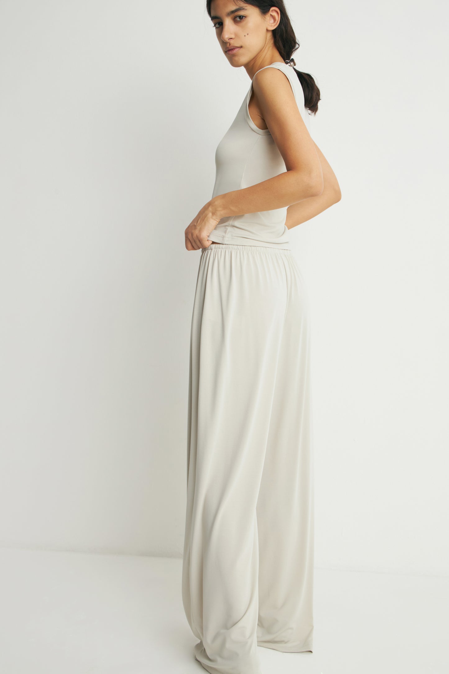 Loose-fit trousers in modal jersey featuring wide legs and a low, elasticated waist with a narrow drawstring.