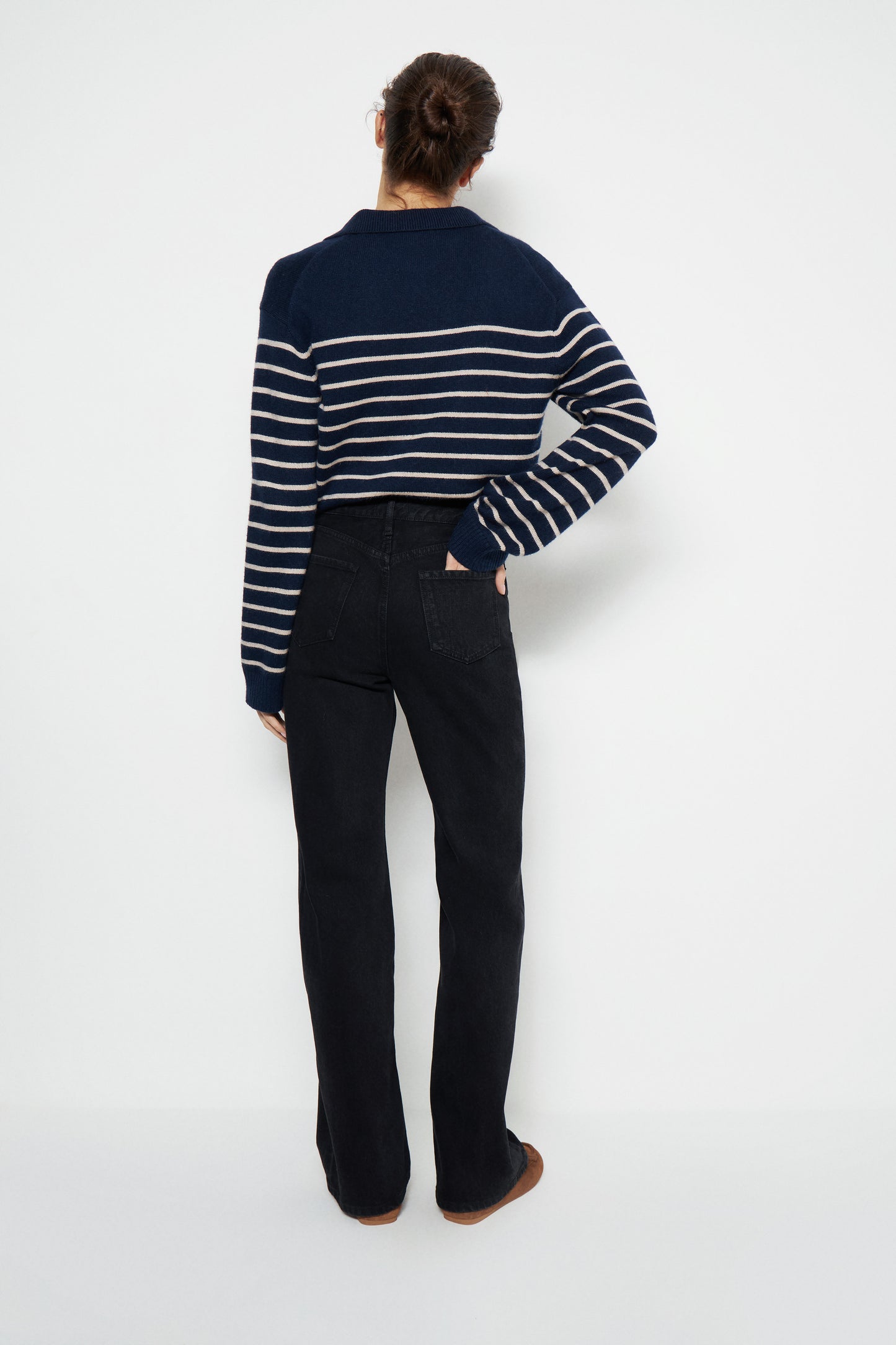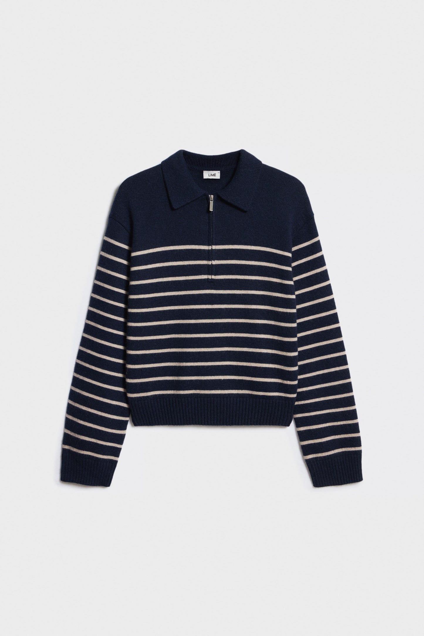 Oversized sweater crafted from a knitted viscose containing some angora wool. Featuring a high collar, long sleeves and a zip at the top. Ribbed trims.