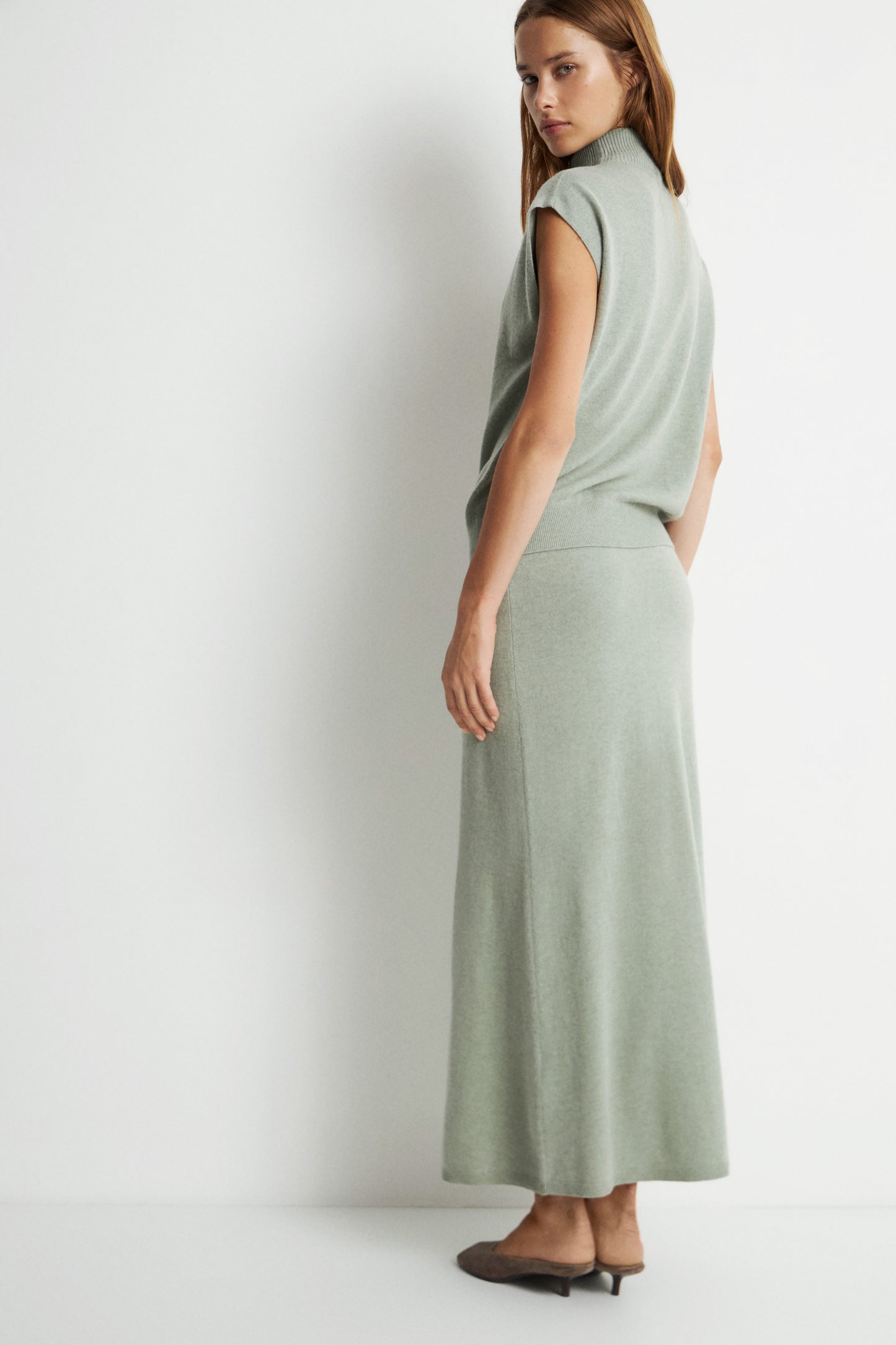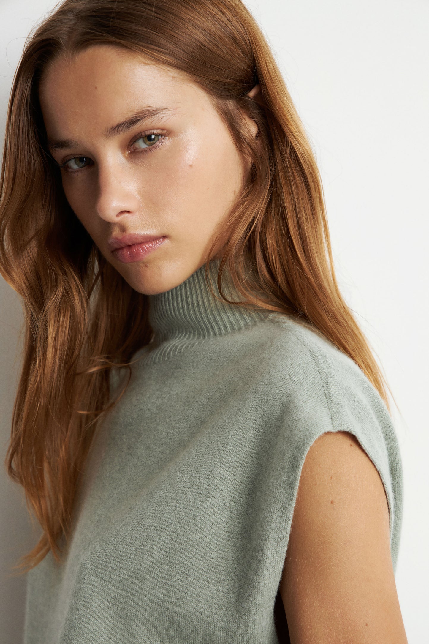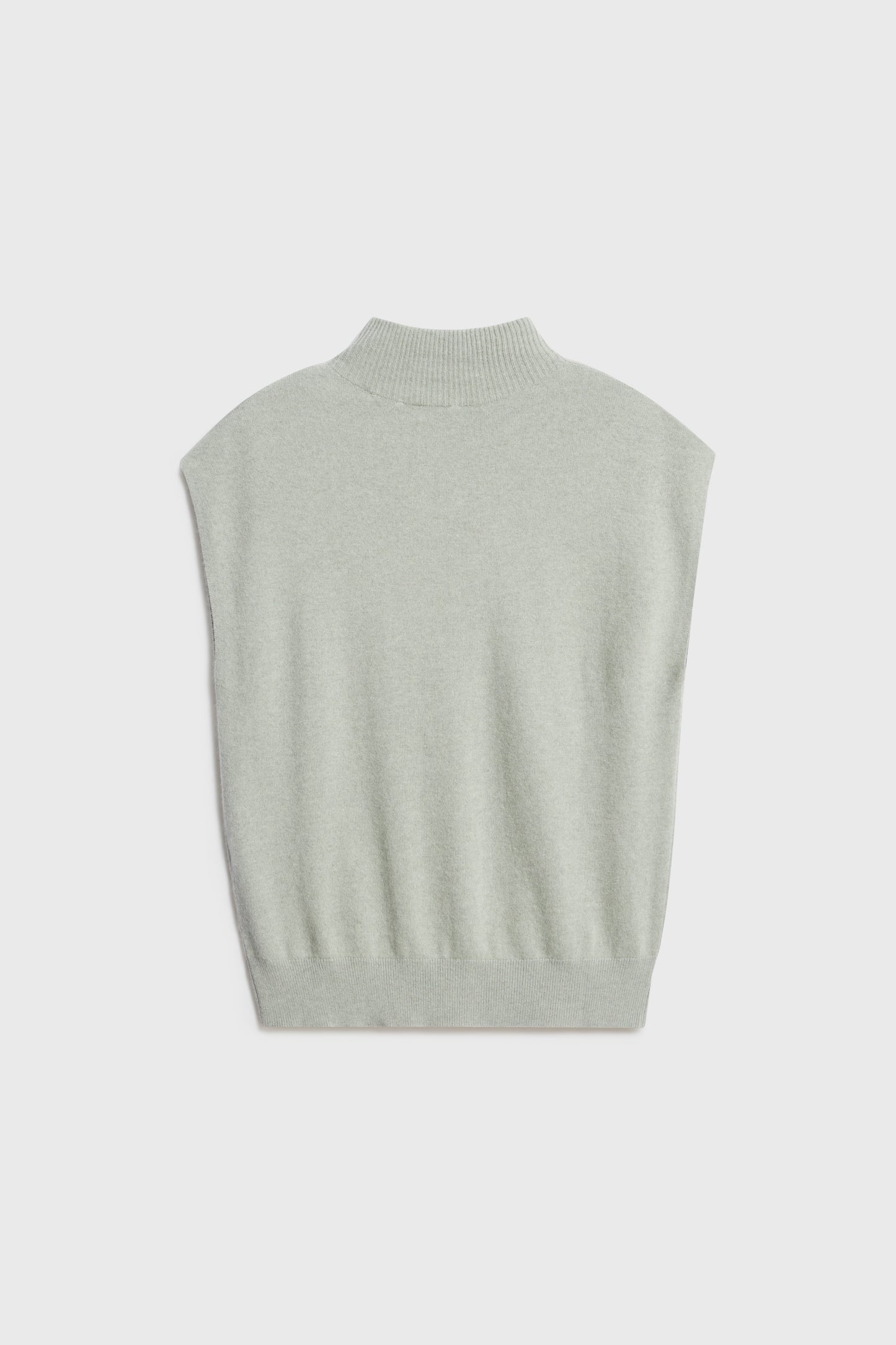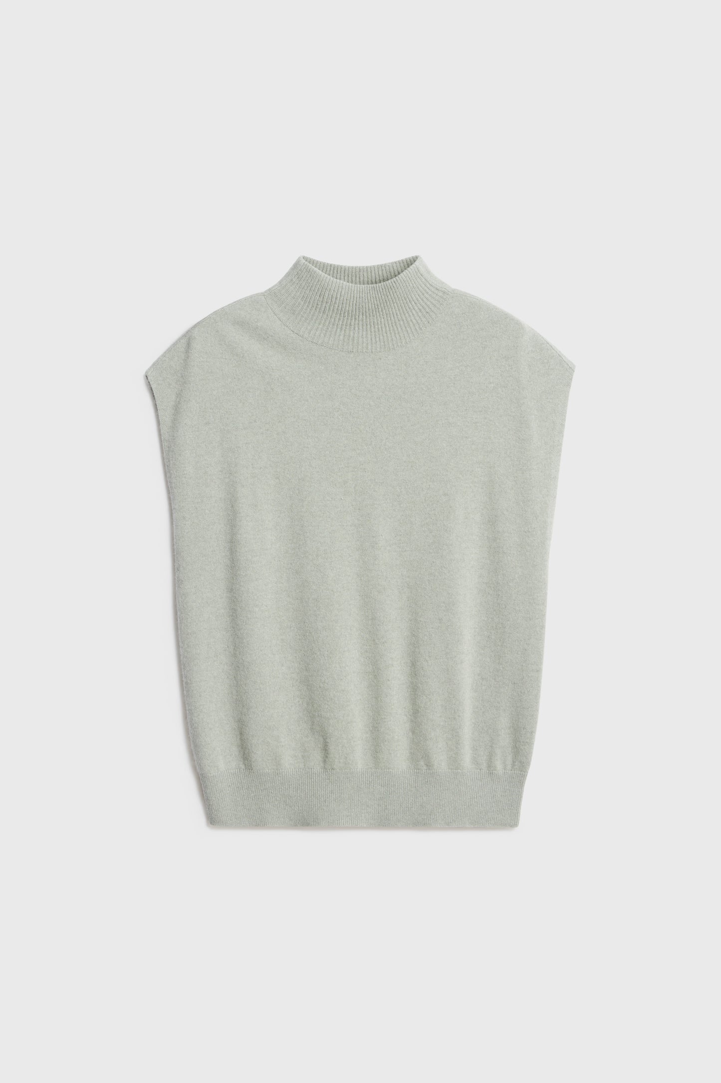 Knitted top made from a wool and cashmere blend. High collar and ribbed edges.