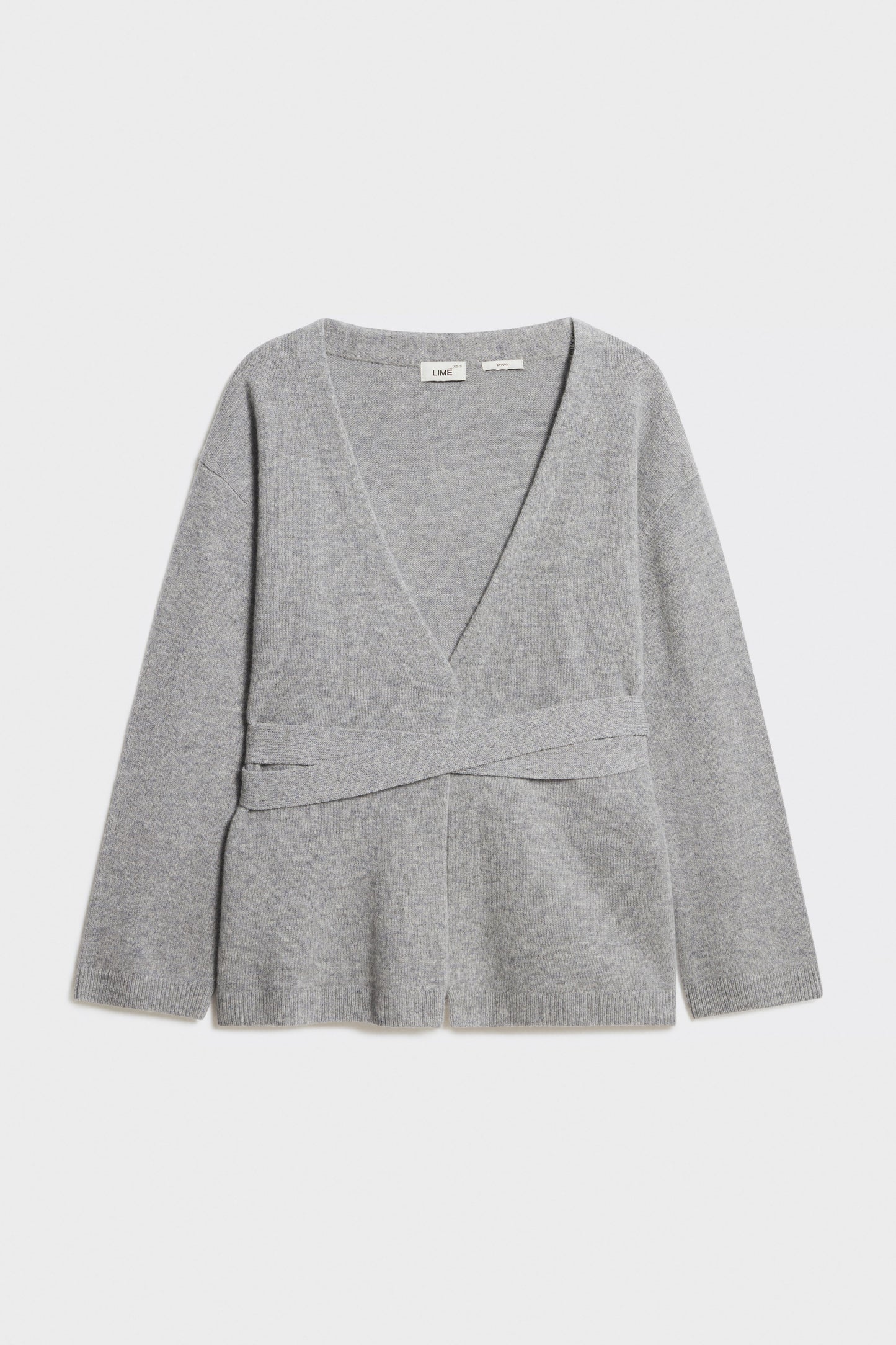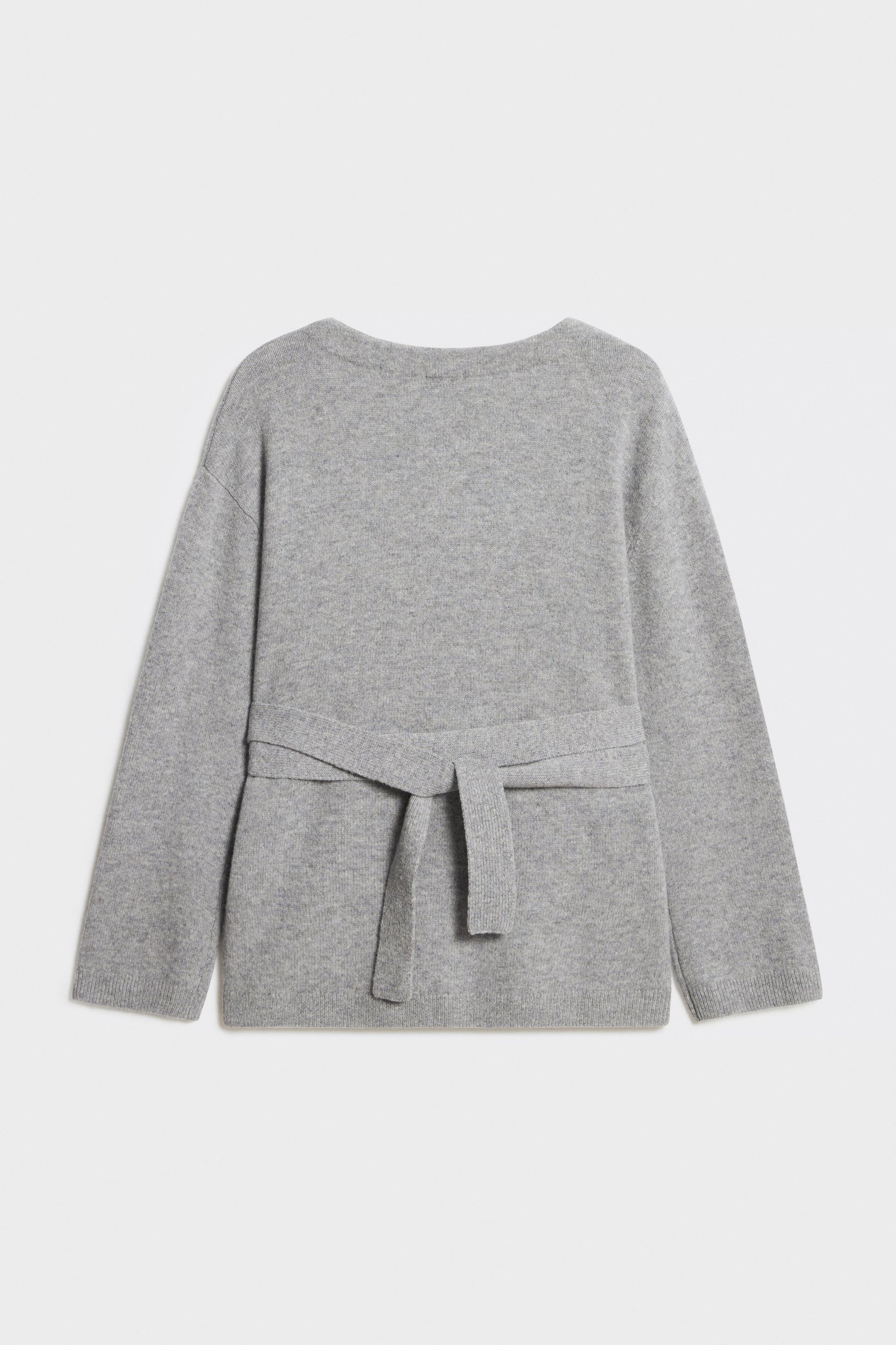 Slim-fit cardigan in a fine knit 100% wool. V-neck, gently dropped shoulders and long sleeves. Open front and a matching, detachable tie belt at the waist.